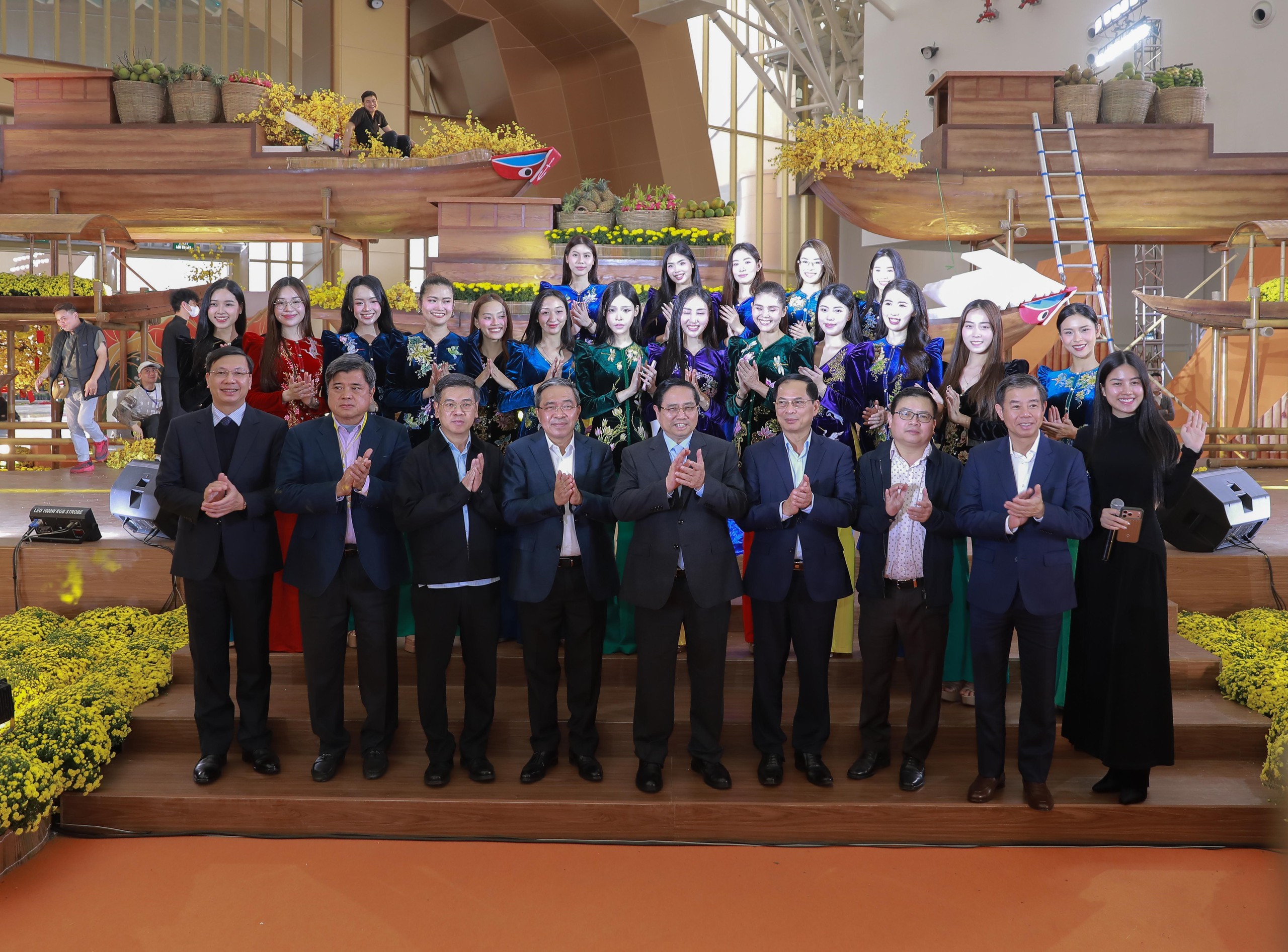 Thủ tướng Phạm Minh Chính chụp ảnh lưu niệm cùng lãnh đạo TP Hồ Chí Minh và các nghệ sĩ tham gia Hội chợ Mùa Xuân 2026.. Ảnh: Phan Phương – TTXVN