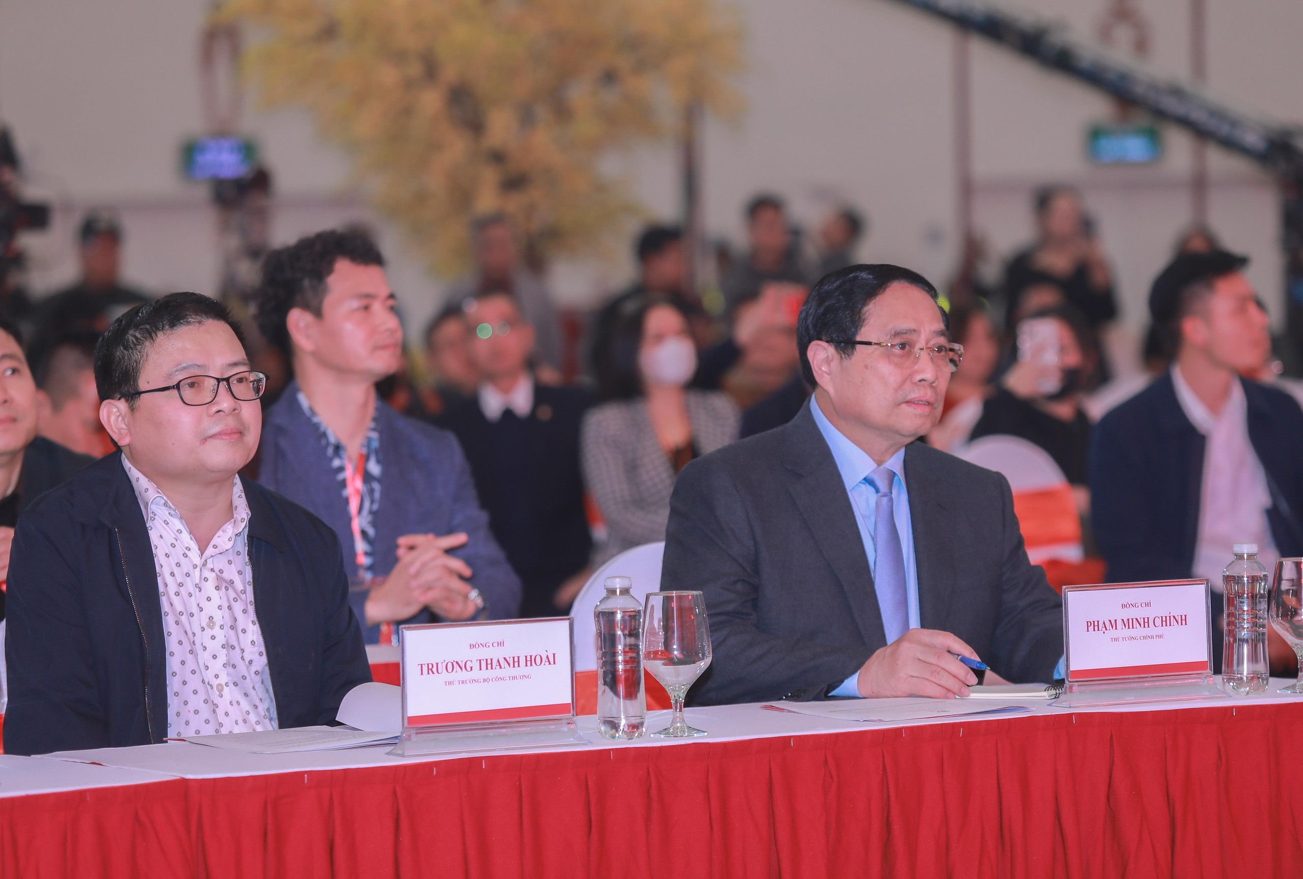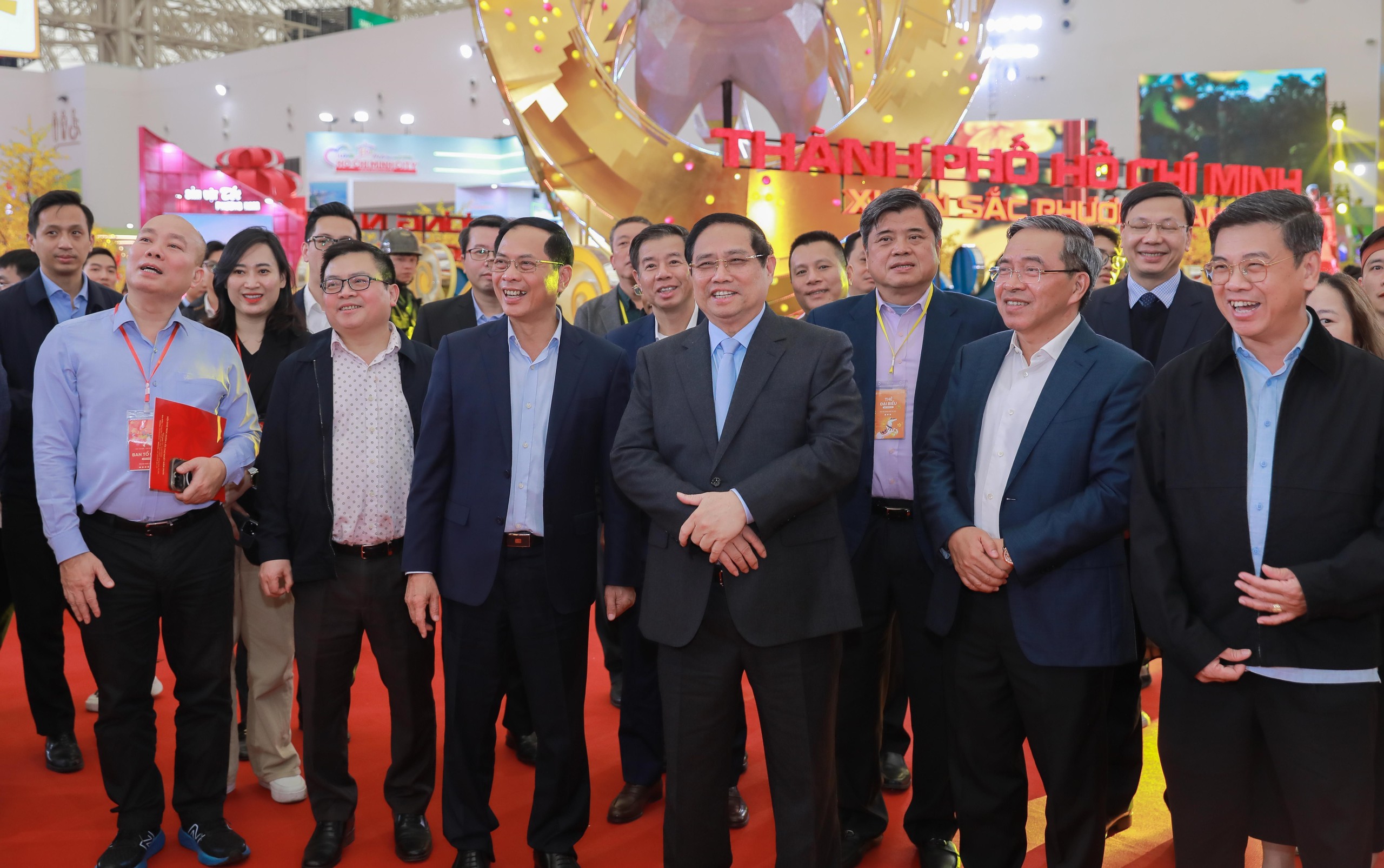Thủ tướng Phạm Minh Chính dự tổng duyệt chương trình khai mạc Hội chợ Mùa Xuân 2026. Ảnh: Phan Phương – TTXVN