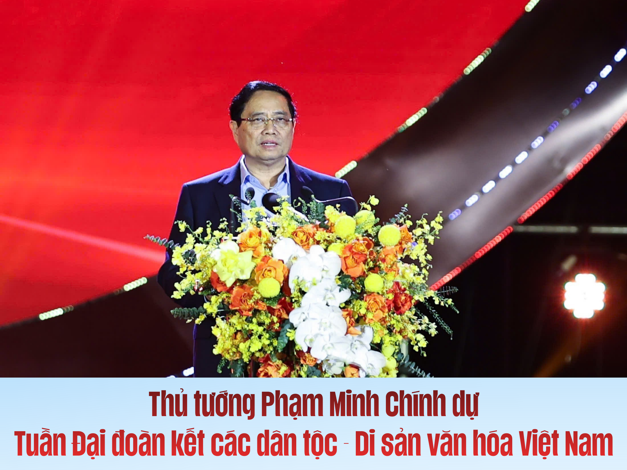 Tối 24/11/2025, Thủ tướng Phạm Minh Chính dự Tuần "Đại đoàn kết các dân tộc - Di sản văn hóa Việt Nam" năm 2025 với chủ đề "Đoàn kết một lòng - Hướng về miền Trung", được tổ chức tại Làng Văn hóa - Du lịch các dân tộc Việt Nam (Đồng Mô, Hà Nội).