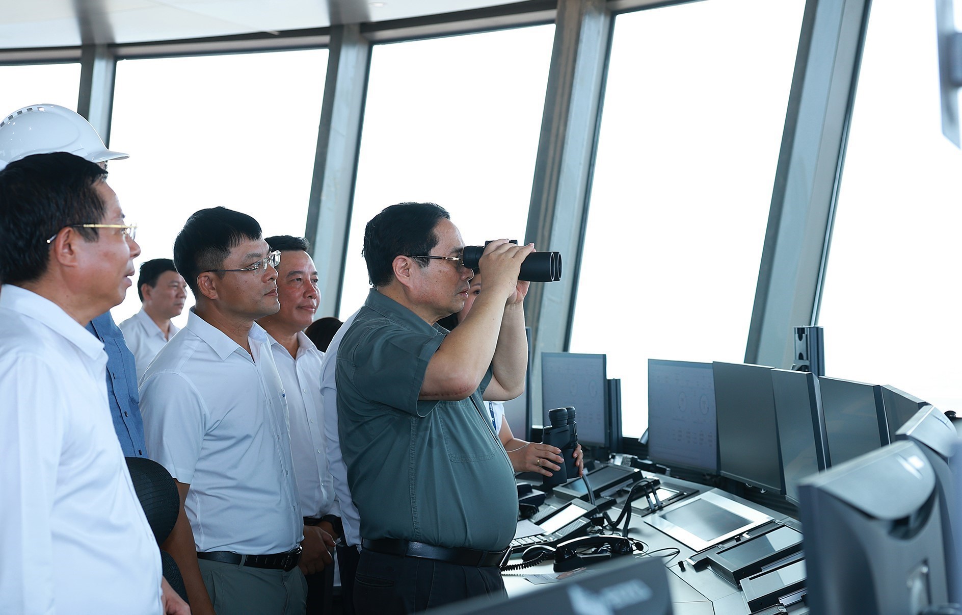Thủ tướng Phạm Minh Chính quan sát tổng quan Dự án cảng hàng không quốc tế Long Thành từ Đài kiểm soát không lưu. Ảnh: Dương Giang-TTXVN