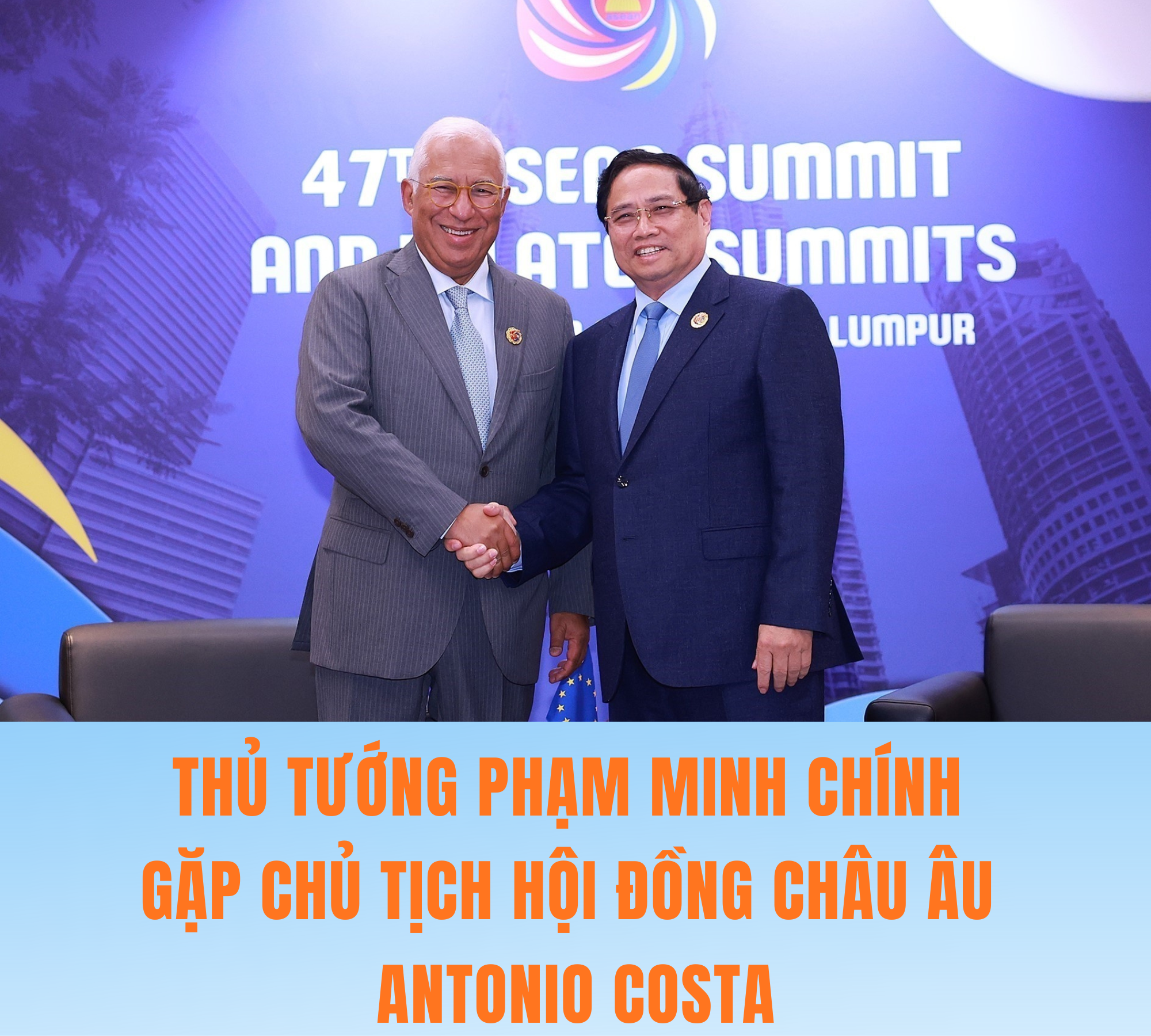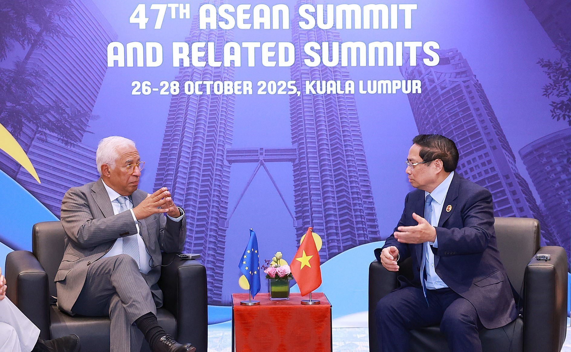 Nhân chuyến tham dự Hội nghị Cấp cao ASEAN lần thứ 47 và các Hội nghị Cấp cao liên quan diễn ra tại Kuala Lumpur, sáng 27/10/2025, Thủ tướng Phạm Minh Chính gặp Chủ tịch Hội đồng châu Âu Antonio Costa.