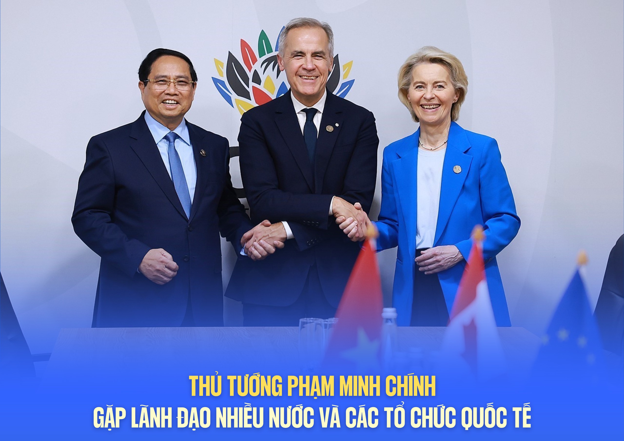 * Gặp lại Thủ tướng Canada Mark Carney, Thủ tướng Phạm Minh Chính đánh giá cao những tiến triển tích cực trong quan hệ hai nước thời gian qua trên tất cả các lĩnh vực, tạo tiền đề thuận lợi để đẩy mạnh hợp tác thực chất, hiệu quả hơn thời gian tới. Thủ tướng bày tỏ mong muốn đưa hợp tác kinh tế, thương mại, đầu tư, khoa học công nghệ trở thành trụ cột quan trọng trong quan hệ song phương, nhằm khai thác hiệu quả tính bổ trợ giữa hai nền kinh tế và lợi thế cùng là thành viên của Hiệp định Đối tác toàn diện và tiến bộ xuyên Thái Bình Dương (CPTPP); đề nghị Canada mở cửa thị trường cho hàng hóa Việt Nam, đẩy mạnh đầu tư và kết nối chuỗi cung ứng theo hướng bền vững, cùng có lợi.