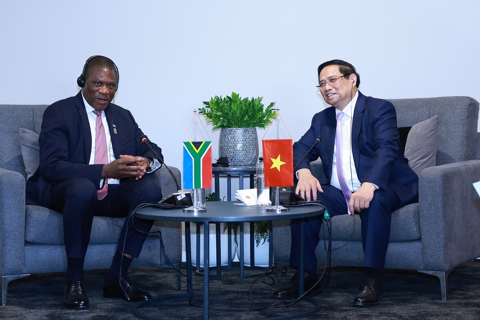 Thủ tướng Phạm Minh Chính gặp Phó Tổng thống Nam Phi Paul Mashatile. Ảnh: Dương Giang-TTXVN