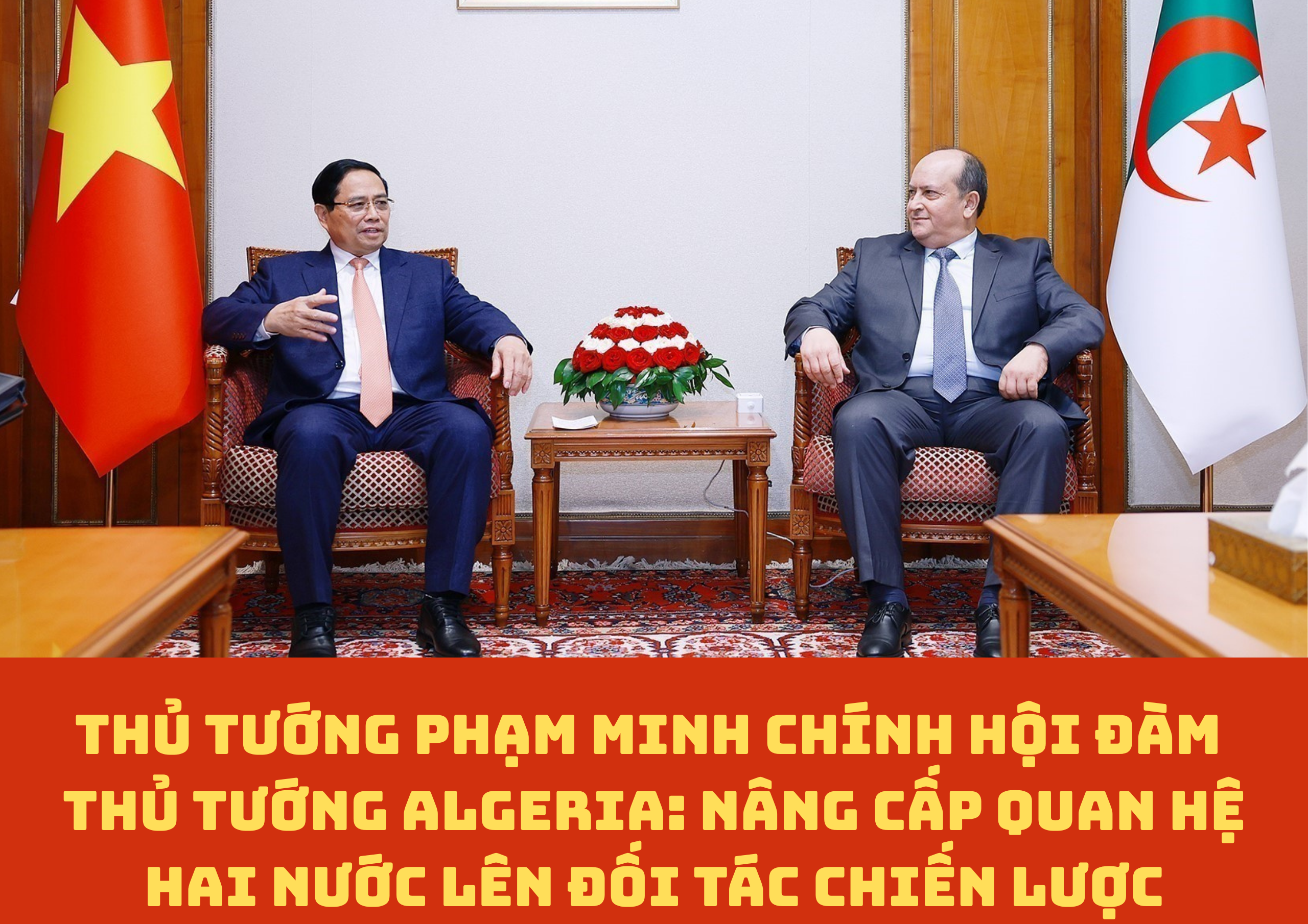 Trong khuôn khổ chuyến thăm chính thức Algeria, sáng 19/11 theo giờ địa phương, tại Trung tâm Hội nghị quốc tế ở thủ đô Algiers, Thủ tướng Chính phủ Phạm Minh Chính đã hội đàm với Thủ tướng Algeria Sifi Ghrieb. Hai bên nhất trí nâng cấp quan hệ Việt Nam – Algeria lên Đối tác Chiến lược.