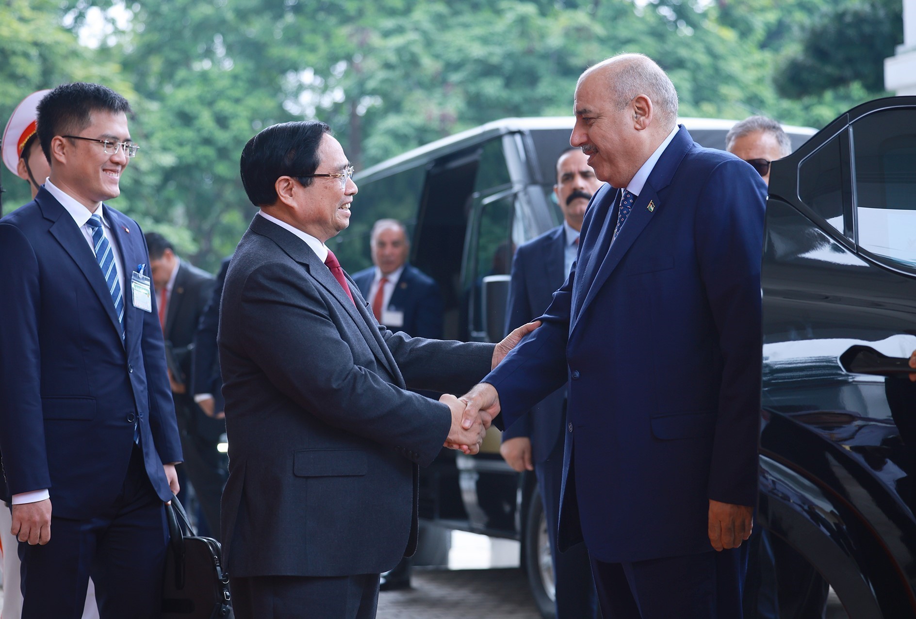 Thủ tướng Phạm Minh Chính hội kiến Chủ tịch Hạ viện Vương quốc Hashemite Jordan Mazen Turki El Qadi. Ảnh: Dương Giang-TTXVN