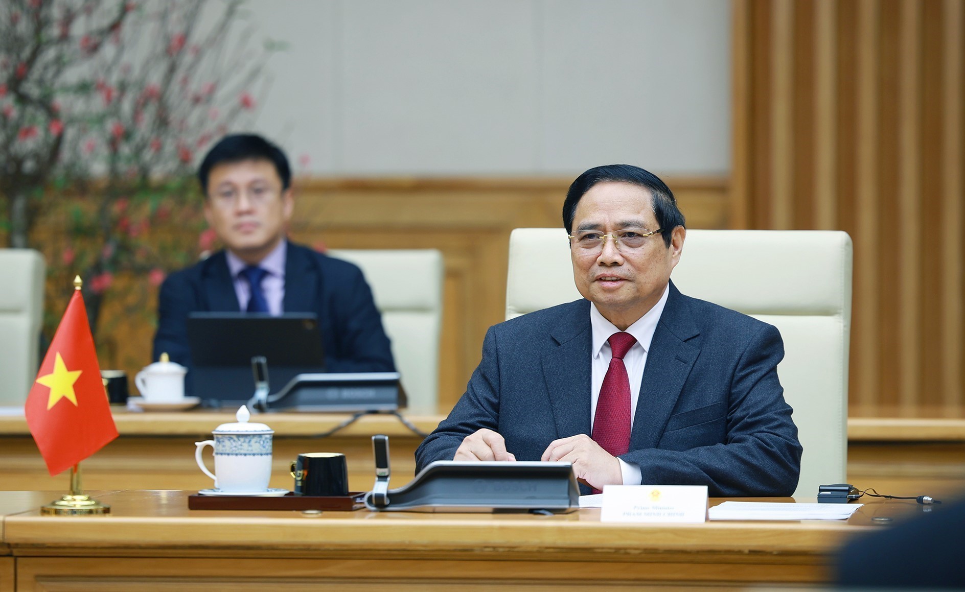 Thủ tướng Phạm Minh Chính phát biểu tại cuộc hội kiến Chủ tịch Hạ viện Vương quốc Hashemite Jordan Mazen Turki El Qadi. Ảnh: Dương Giang-TTXVN
