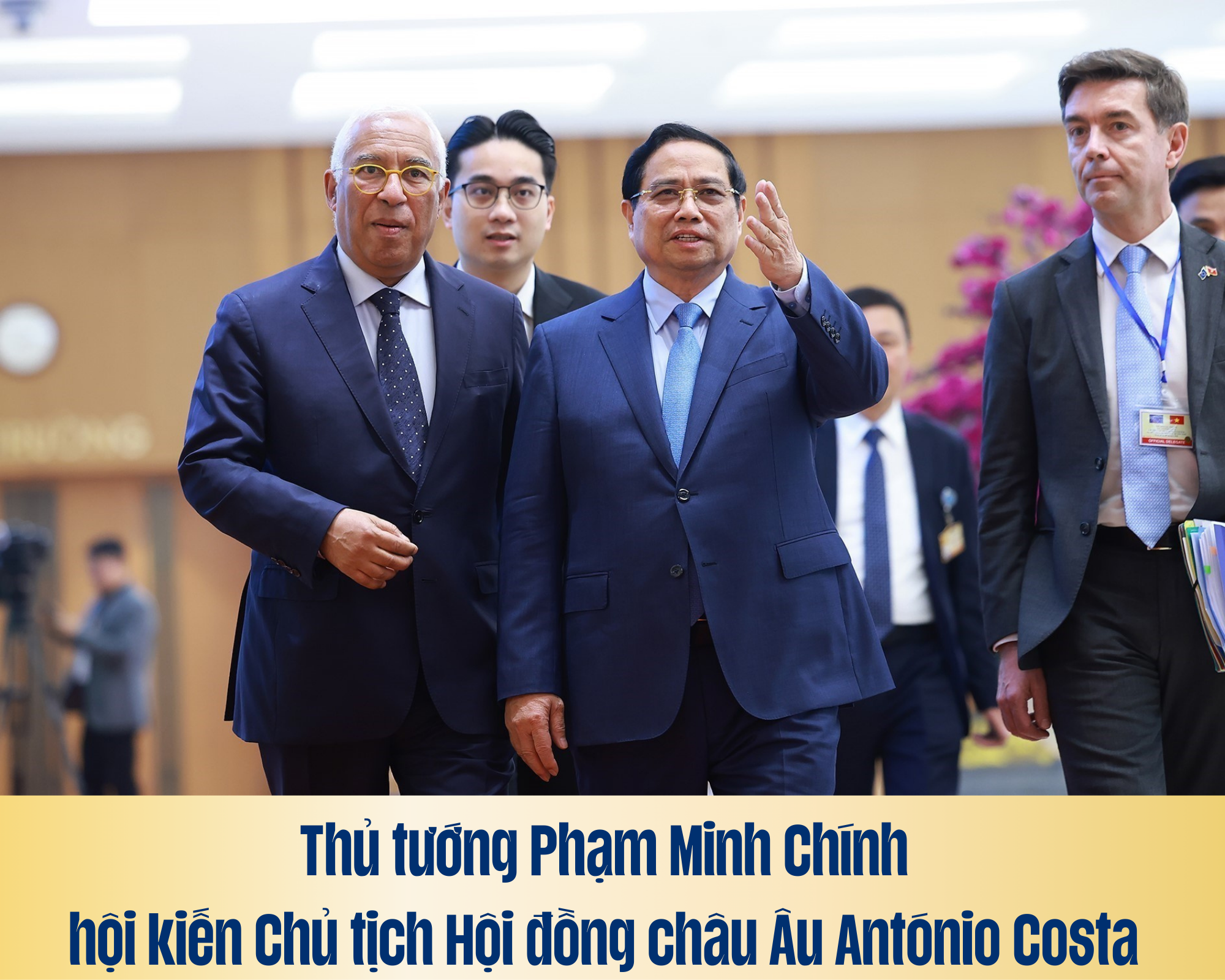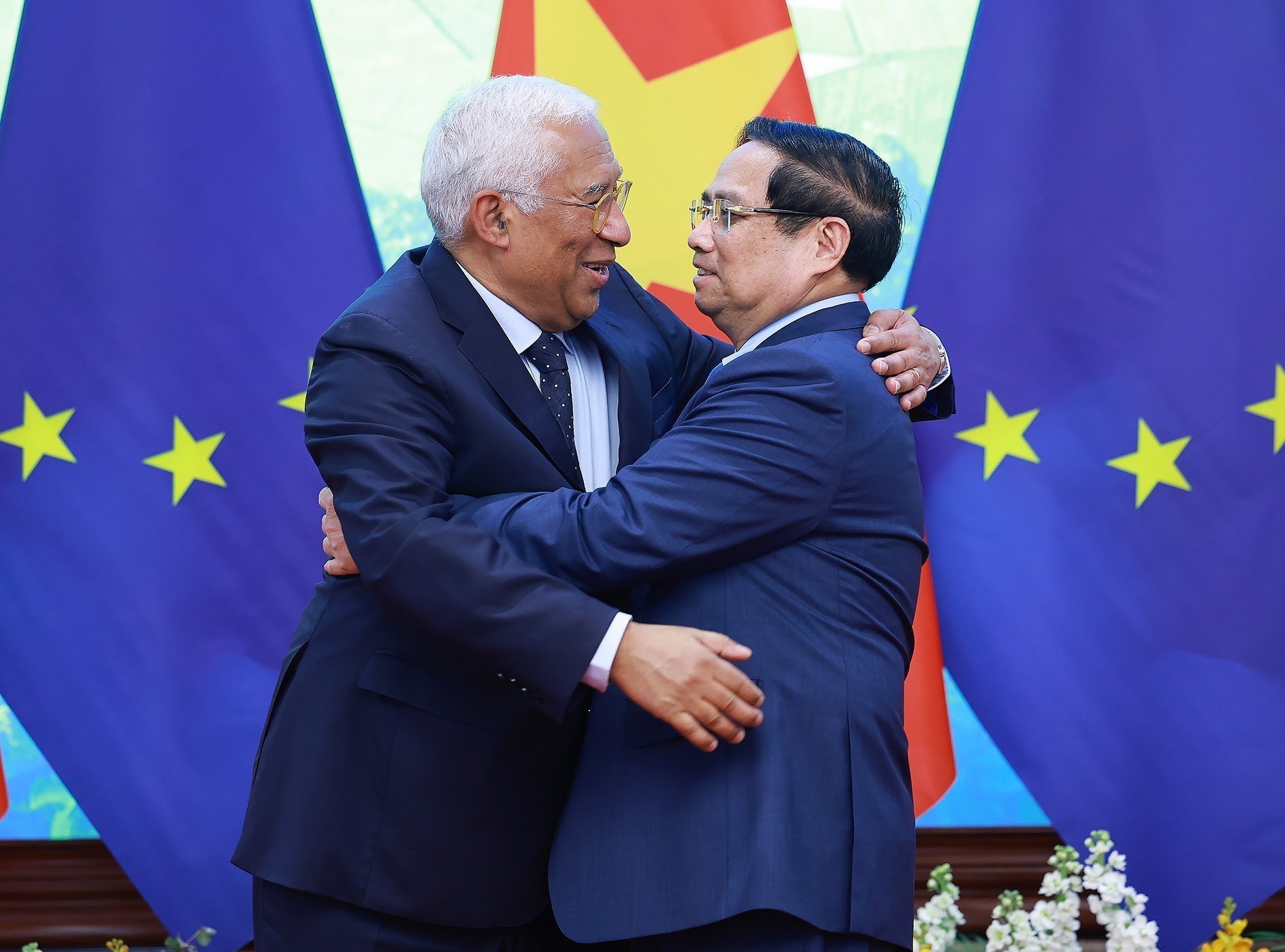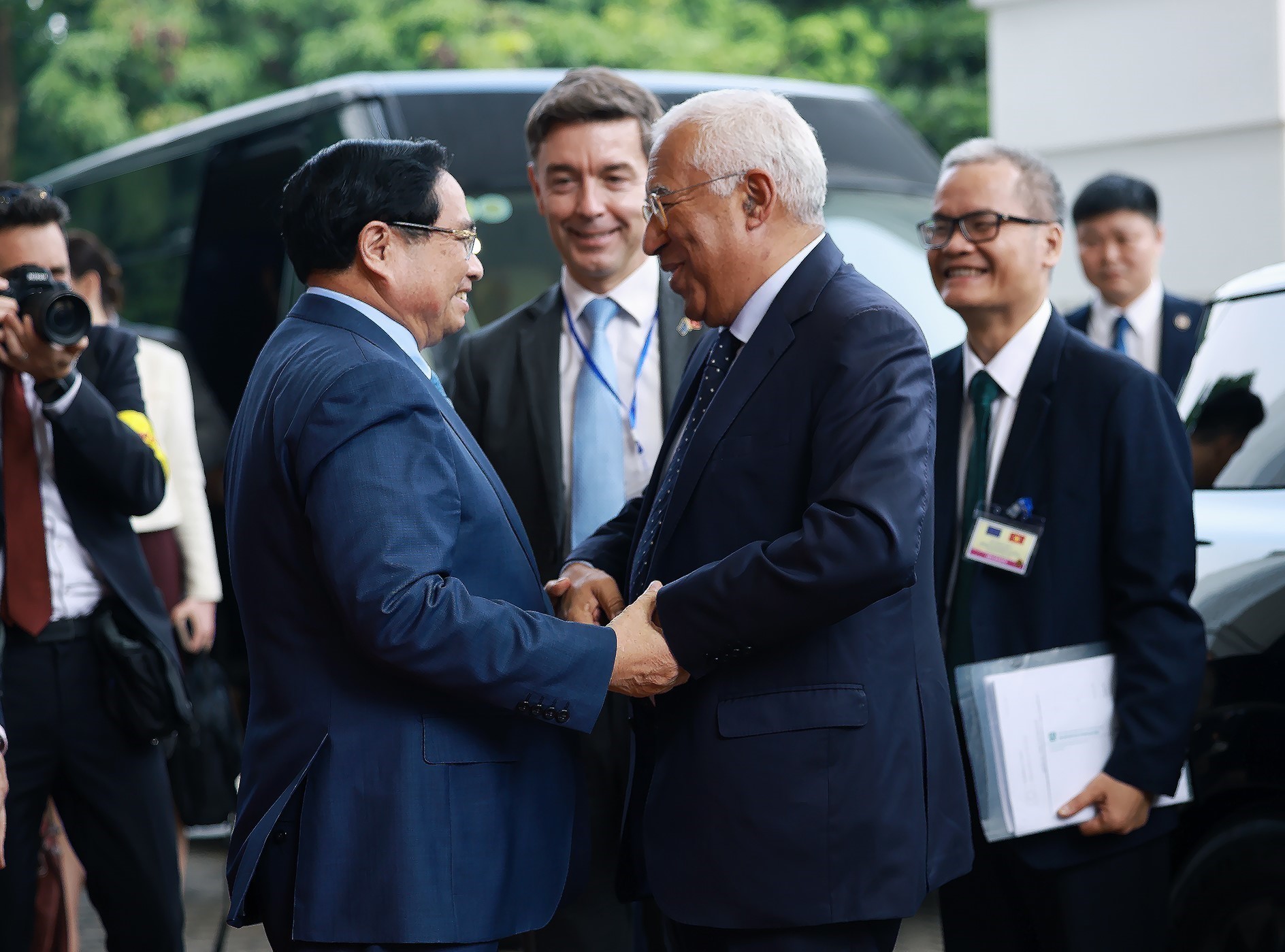 Vui mừng gặp lại Chủ tịch Hội đồng châu Âu António Costa, Thủ tướng Chính phủ chào mừng và khẳng định chuyến thăm có ý nghĩa quan trọng khi Việt Nam - EU nâng cấp quan hệ lên Đối tác chiến lược toàn diện; là dấu mốc lịch sử, thể hiện bước phát triển mới của quan hệ hai bên, đồng thời còn là thông điệp thúc đẩy xu thế hợp tác cho khu vực và cho thế giới.