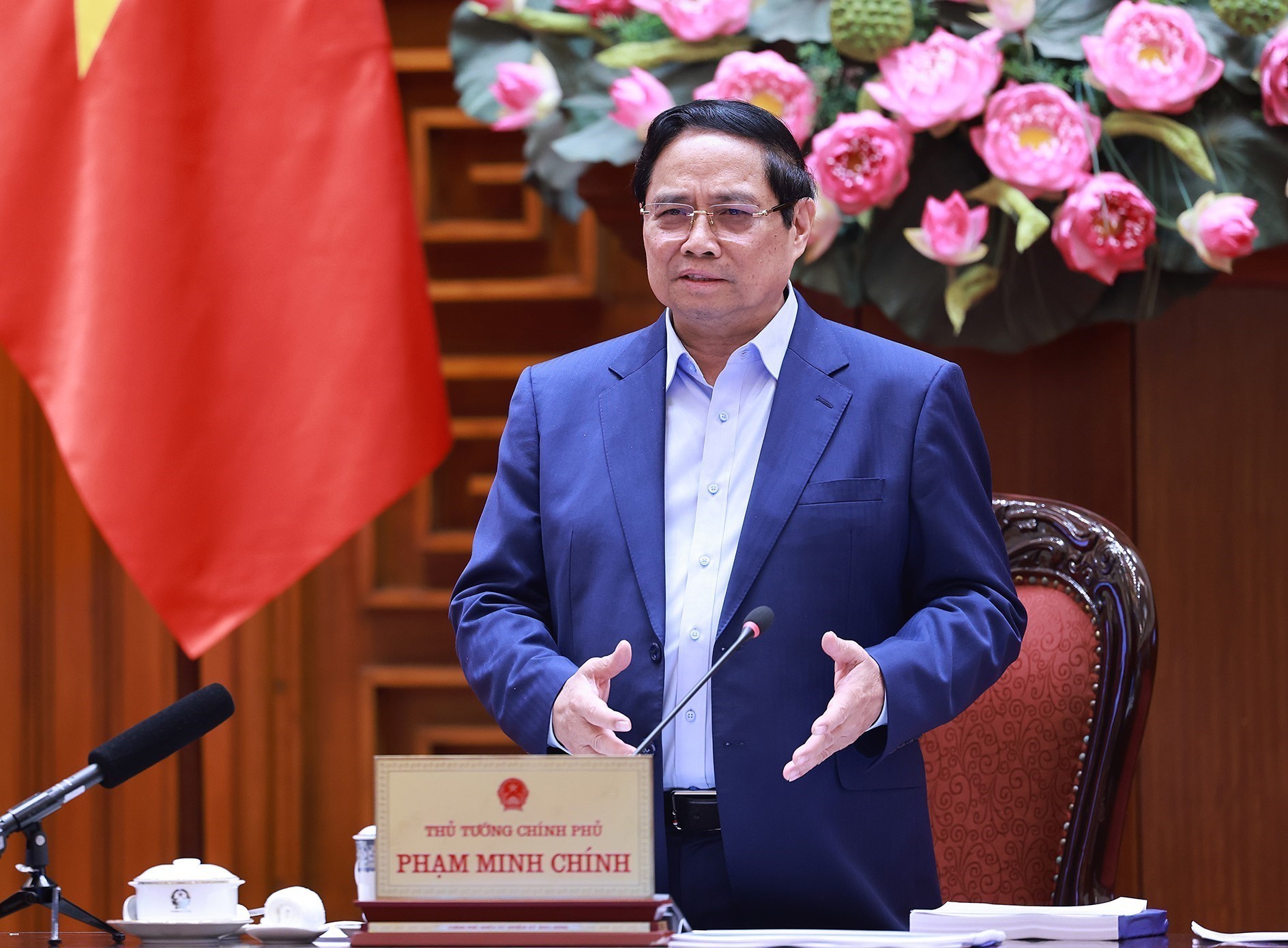 Thủ tướng Phạm Minh Chính chủ trì họp về dự án quy hoạch xây dựng cảnh quan sông Hồng. Ảnh: Dương Giang-TTXVN