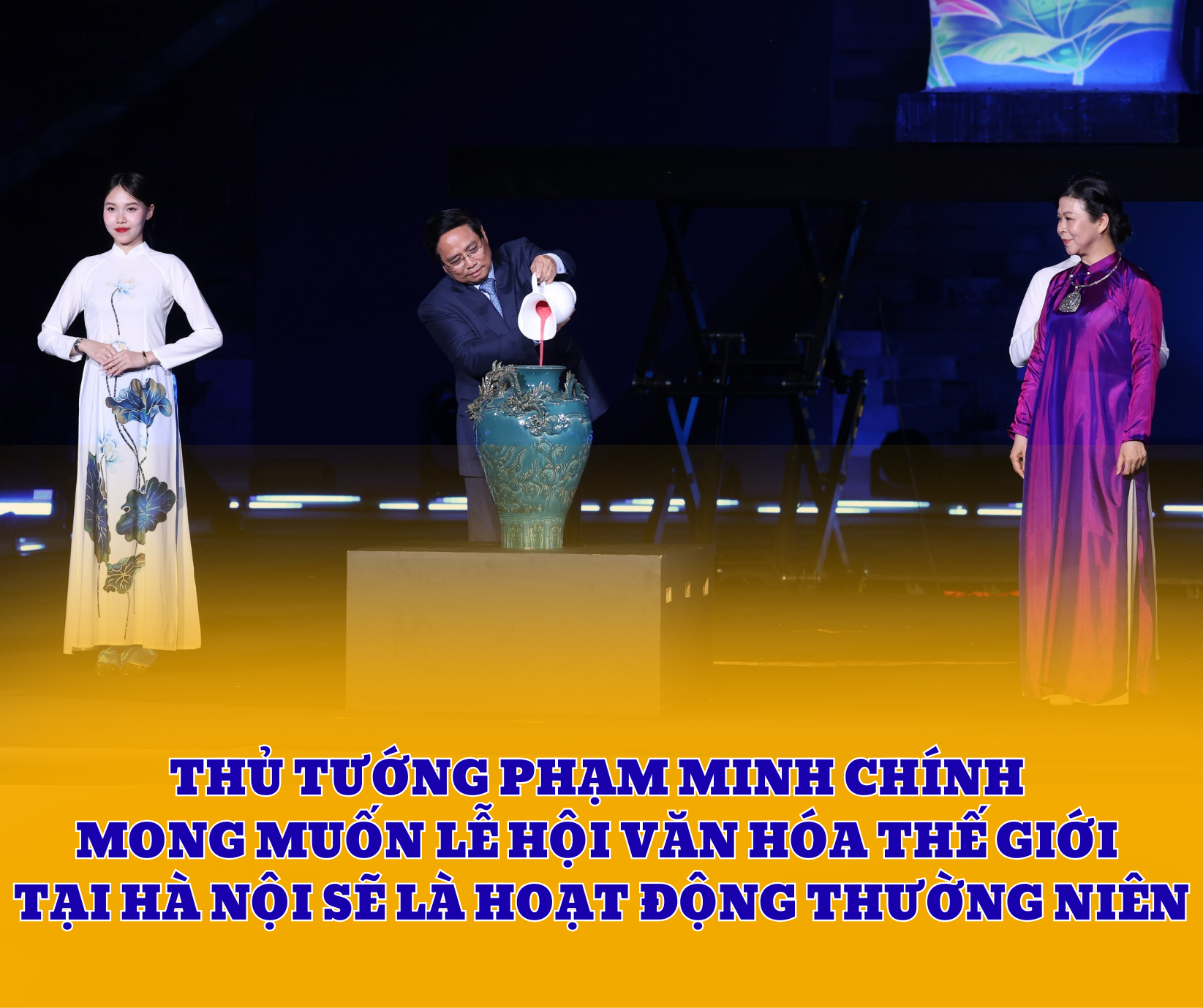 Tối 10/10, Thủ tướng Chính phủ Phạm Minh Chính đã dự Lễ khai mạc Lễ hội Văn hóa Thế giới tại Hà Nội lần thứ Nhất do Bộ Văn hóa, Thể thao và Du lịch, Bộ Ngoại giao và UBND thành phố Hà Nội phối hợp tổ chức tại Trung tâm Di sản Hoàng thành Thăng Long.