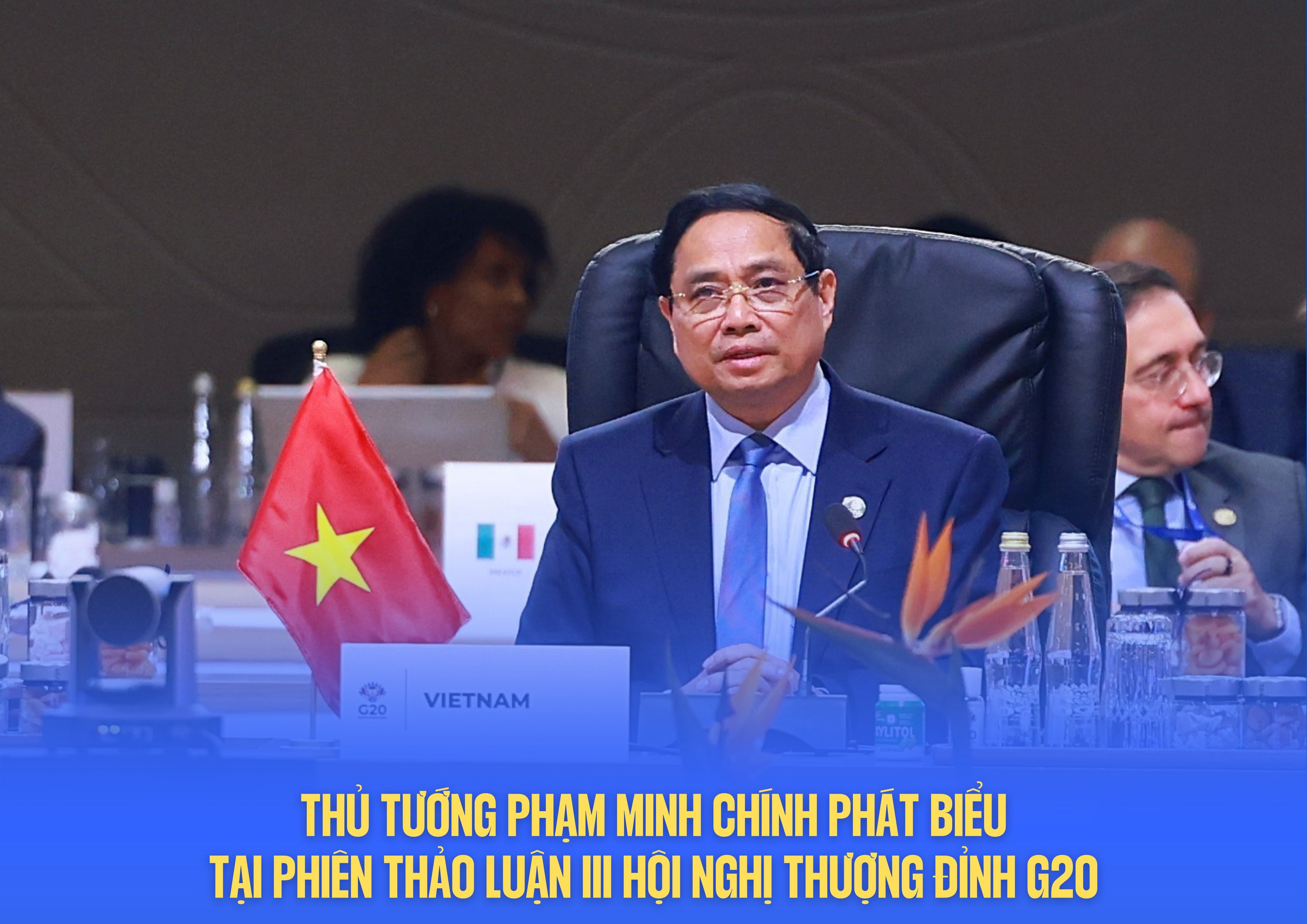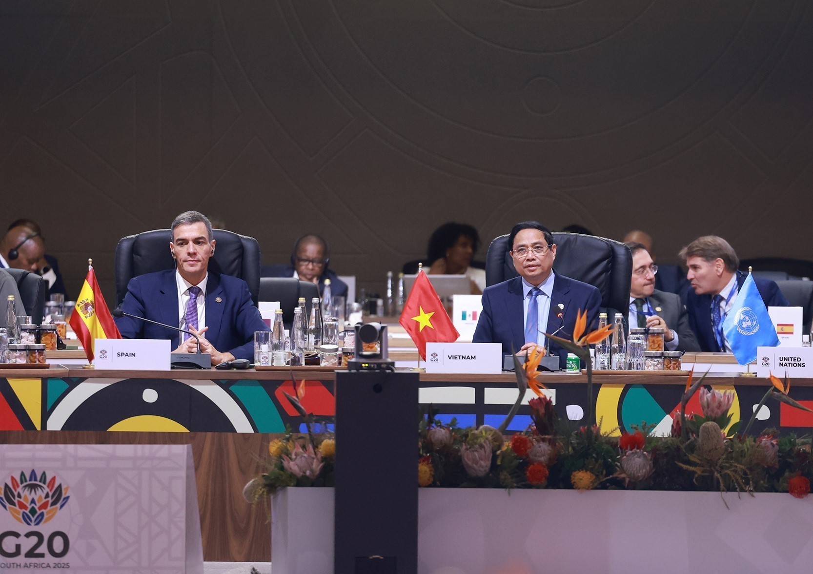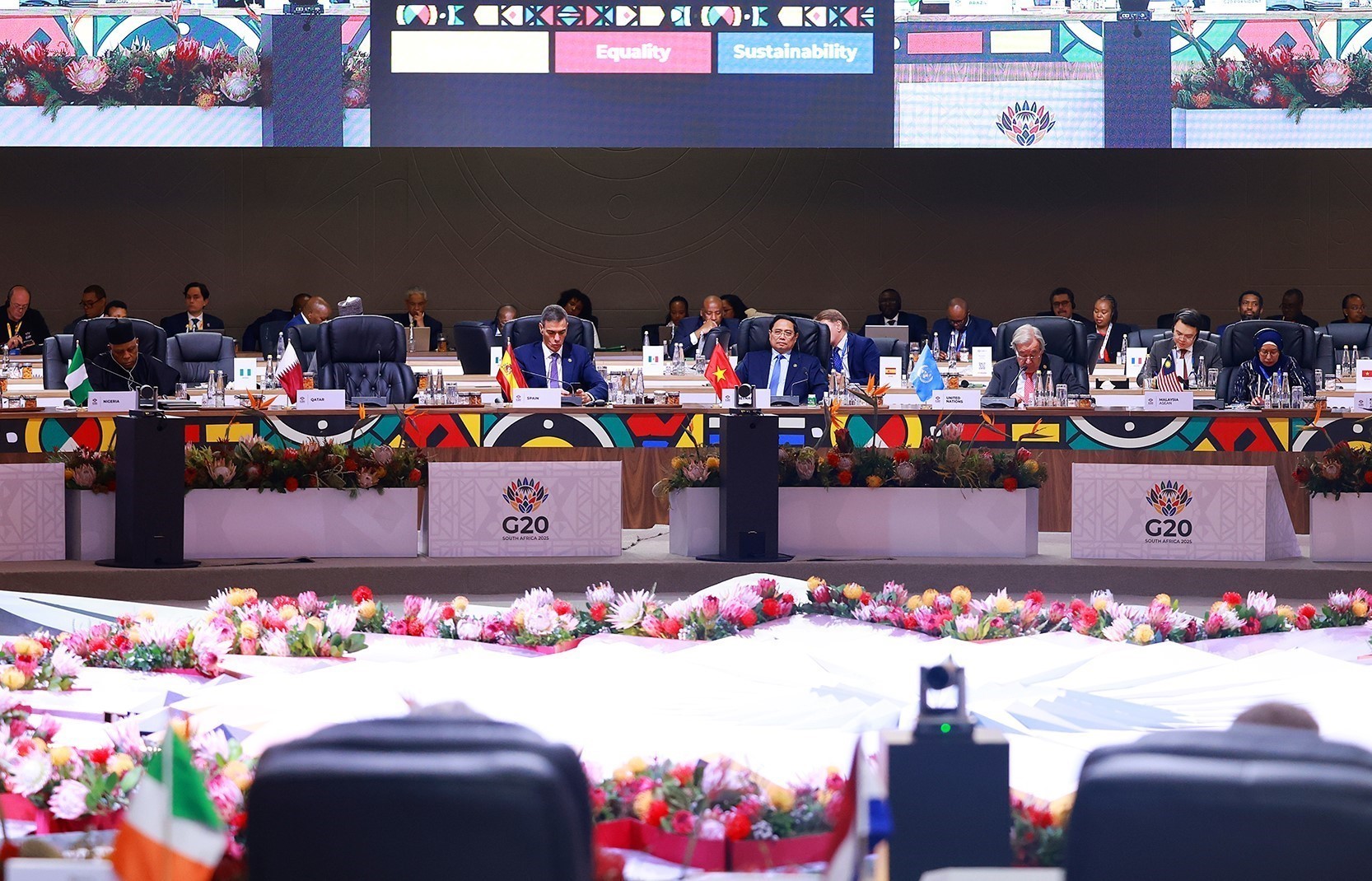 Chiều 23/11/2025 giờ địa phương (tối cùng ngày, giờ Hà Nội), tại thành phố Johannesburg, Nam Phi, Thủ tướng Phạm Minh Chính tham dự và phát biểu tại Phiên thảo luận III Hội nghị Thượng đỉnh Nhóm các nền kinh tế phát triển và mới nổi hàng đầu thế giới (G20).
