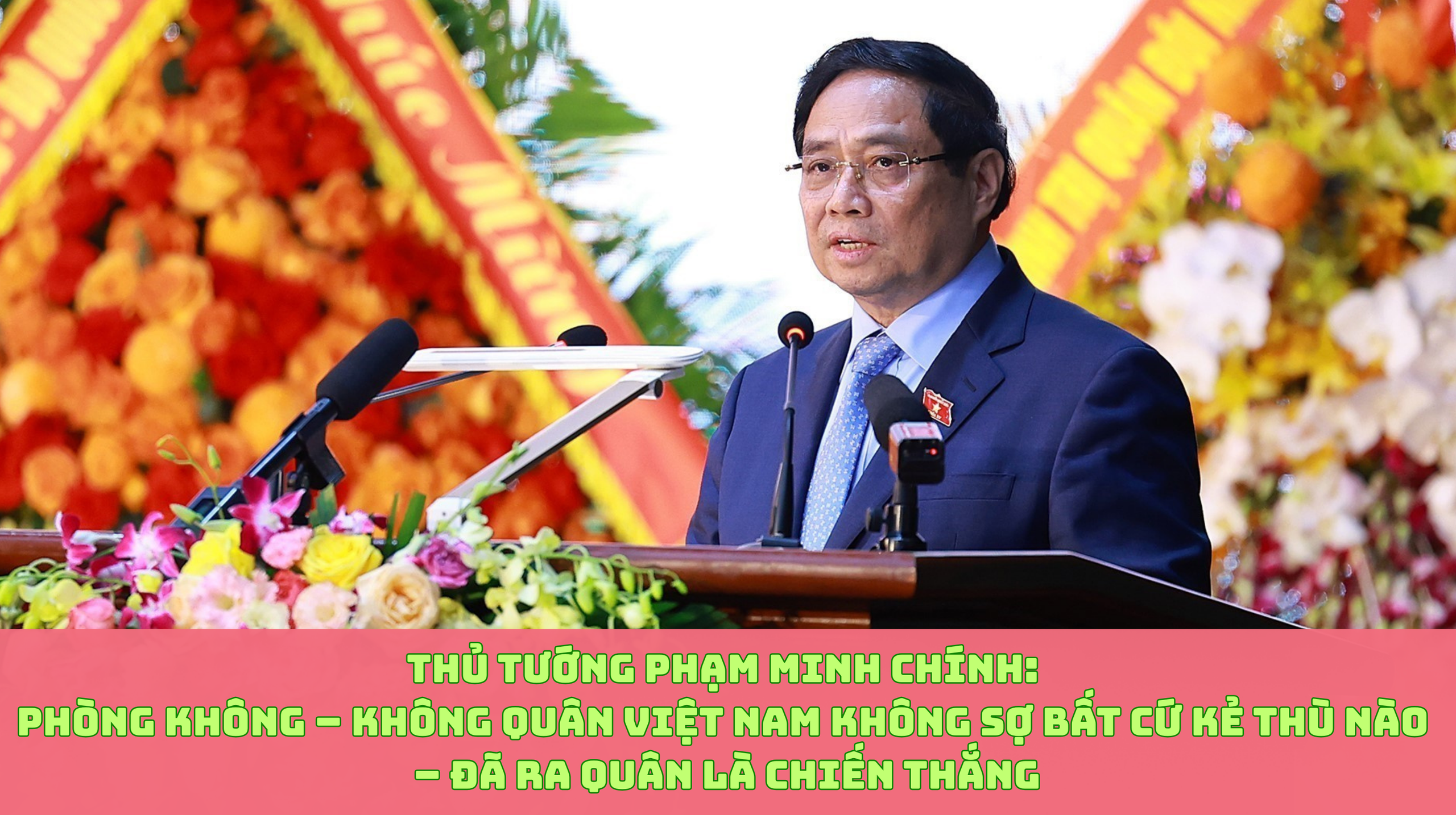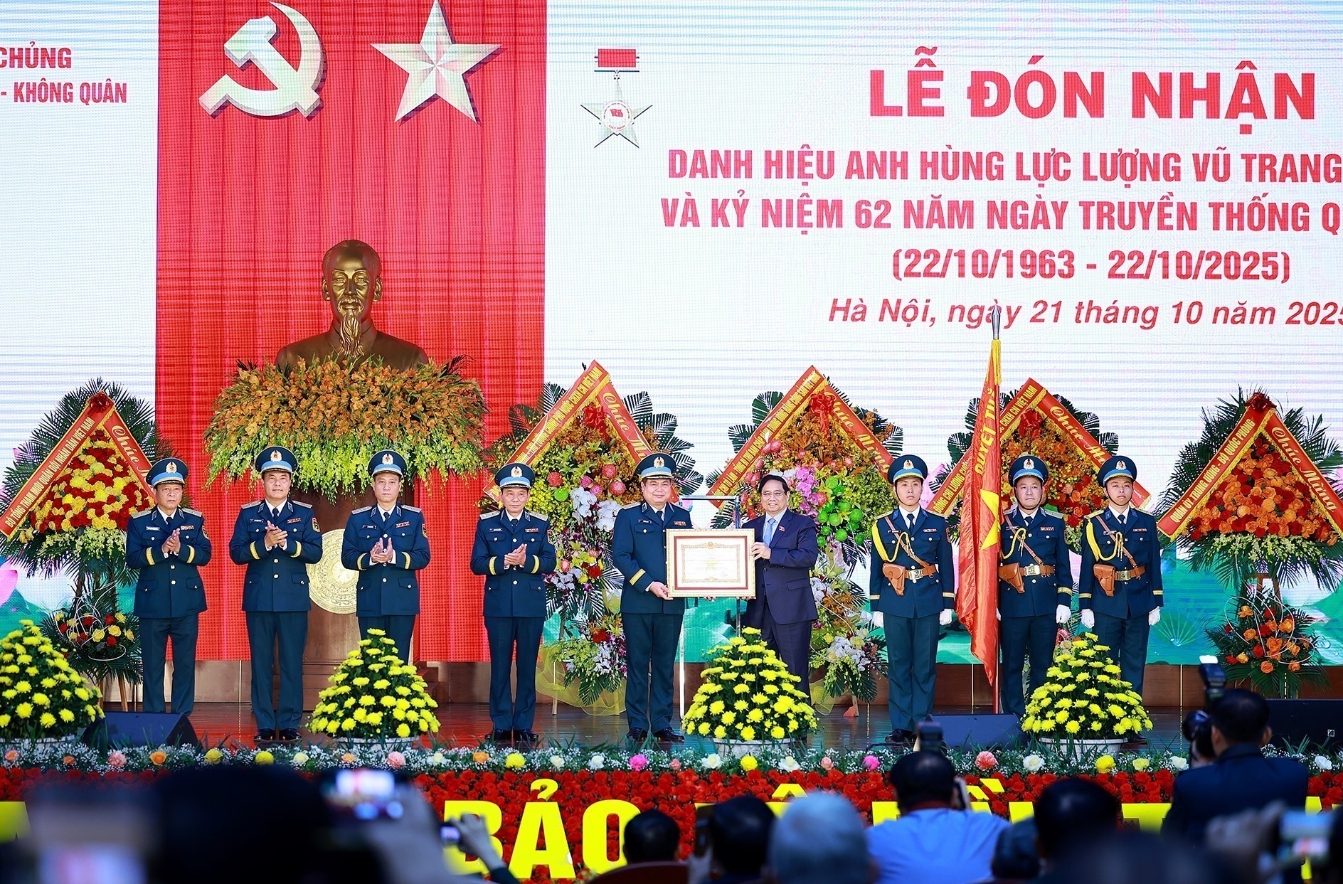 Thủ tướng Chính phủ Phạm Minh Chính thay mặt lãnh đạo Đảng, Nhà nước trao danh hiệu Anh hùng Lực lượng vũ trang Nhân dân – phần thưởng cao quý của Đảng, Nhà nước tặng Quân chủng Phòng không – Không quân. Phát biểu tại buổi lễ, Thủ tướng thay mặt Tổng Bí thư Tô Lâm, Bí thư Quân ủy Trung ương và lãnh đạo Đảng, Nhà nước gửi tới các đại biểu dự buổi Lễ lời chào trân trọng, lời thăm hỏi chân tình và lời chúc mừng tốt đẹp nhất.