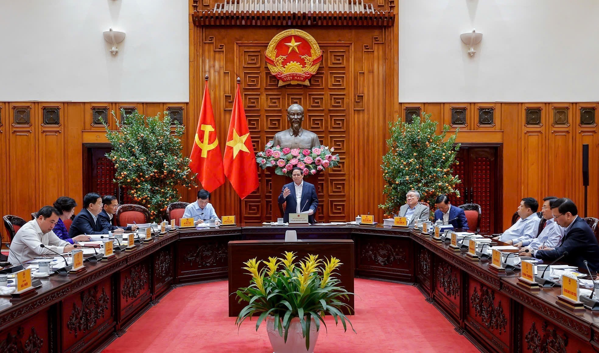 Thủ tướng Phạm Minh Chính chủ trì cuộc làm việc của Thường trực Chính phủ với lãnh đạo thành phố Hà Nội về Quy hoạch tổng thể Thủ đô Hà Nội tầm nhìn 100 năm. Ảnh: Dương Giang - TTXVN
