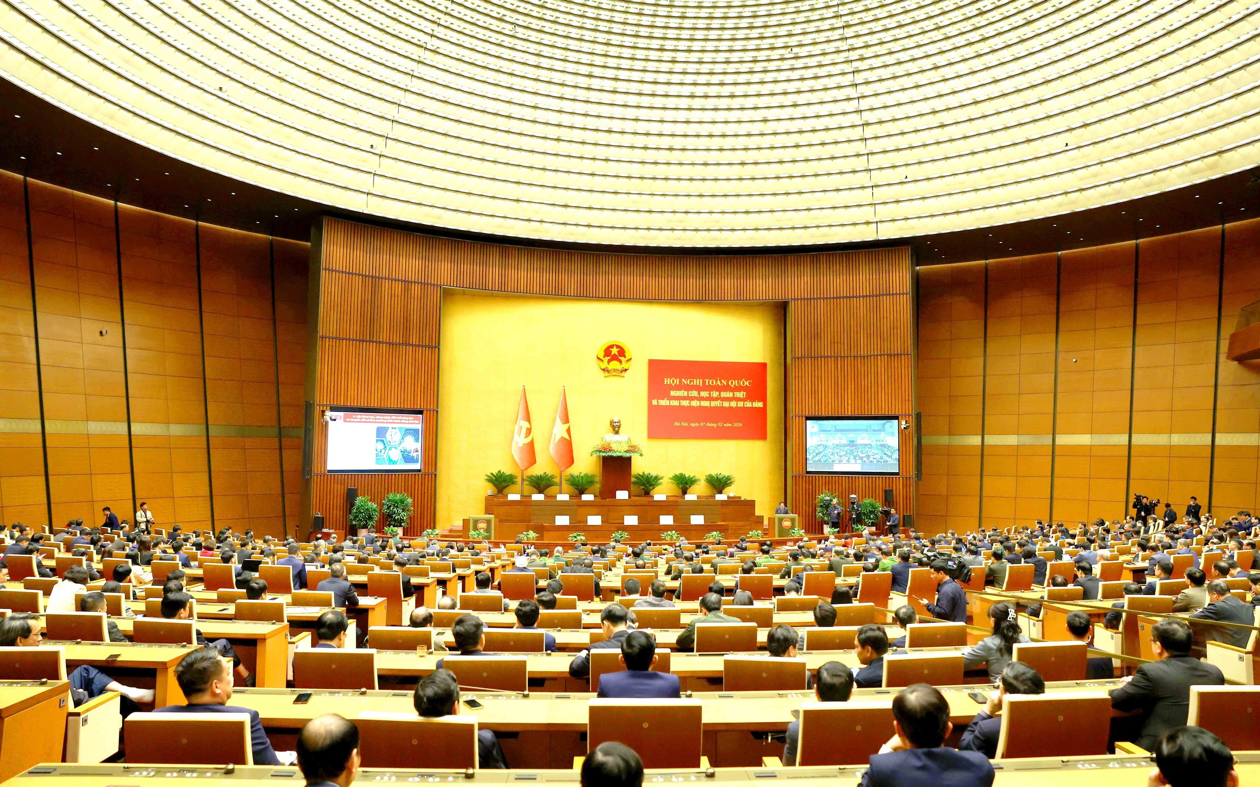Toàn cảnh hội nghị tại điểm cầu chính Hội trường Diên Hồng, Nhà Quốc hội. Ảnh: Phương Hoa - TTXVN