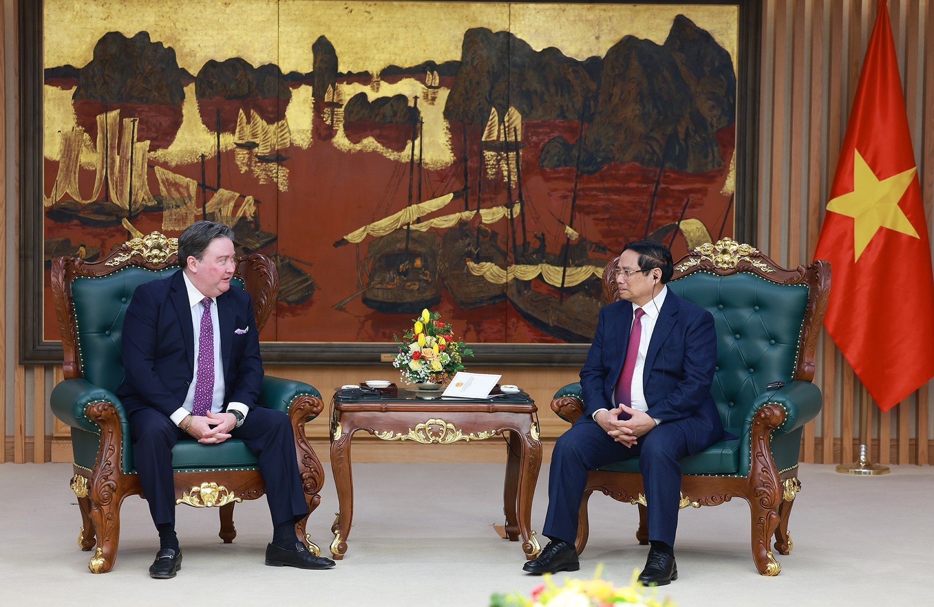 Đại sứ Marc Knapper chia sẻ các đánh giá và đề xuất của Thủ tướng Chính phủ Phạm Minh Chính; nhất trí rằng hai bên cần tiếp tục mở rộng hợp tác hơn nữa trong các lĩnh vực then chốt như chính trị - ngoại giao, an ninh - quốc phòng, thương mại - đầu tư, năng lượng, nhân đạo và khắc phục hậu quả chiến tranh, khoa học - công nghệ, đào tạo nguồn nhân lực chất lượng cao…