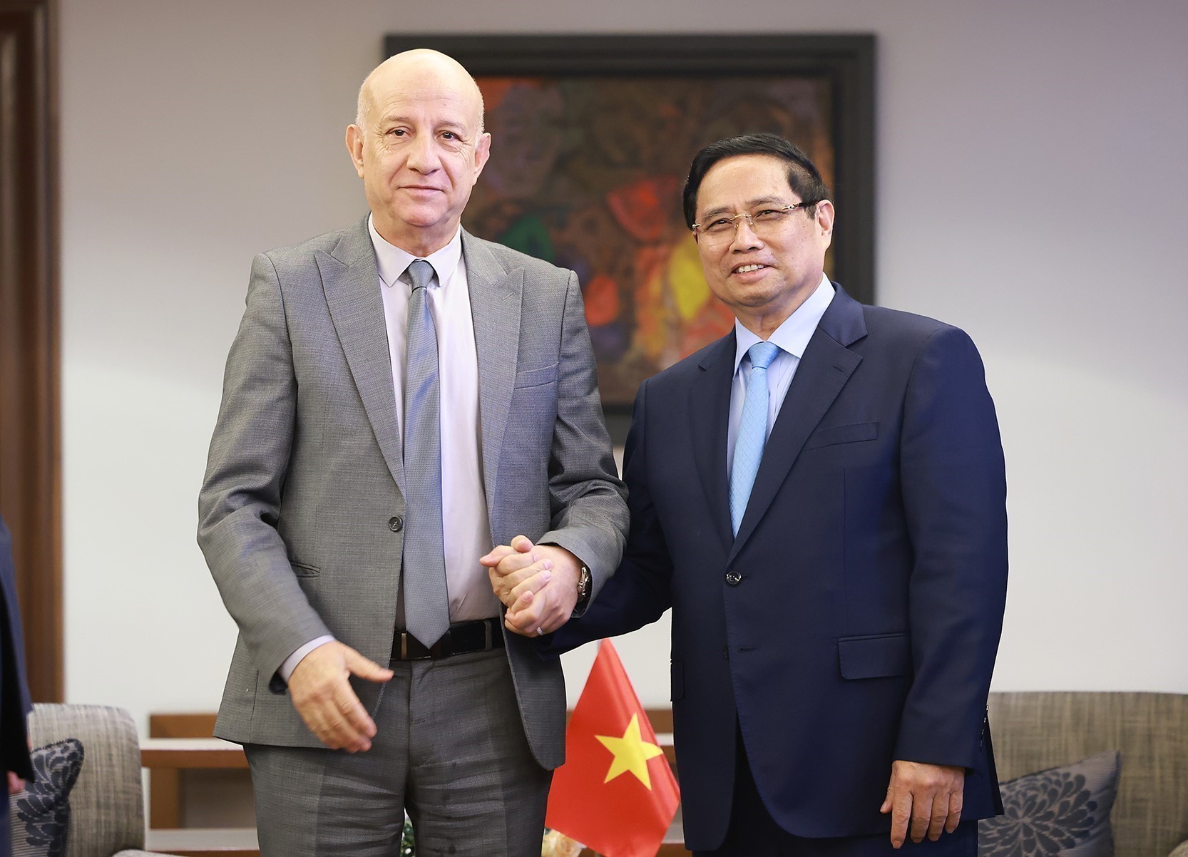 Thủ tướng Phạm Minh Chính tiếp Tổng Bí thư Đảng Mặt trận Giải phóng Dân tộc Algeria (FLN) Abdelkrim Benmbarek. Ảnh: Dương Giang-TTXVN