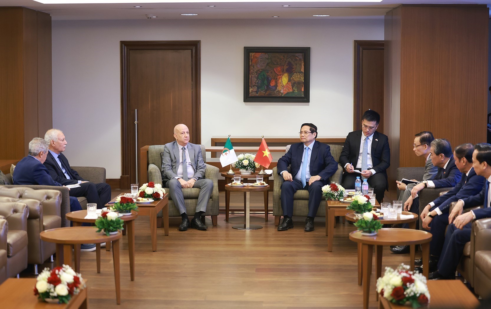 Nhân chuyến thăm chính thức Algeria, chiều 20/11/2025 (giờ địa phương), Thủ tướng Phạm Minh Chính tiếp Tổng Bí thư Đảng Mặt trận Giải phóng Dân tộc Algeria (FLN) Abdelkrim Benmbarek và chứng kiến Lễ ký Thoả thuận hợp tác giữa hai Đảng.