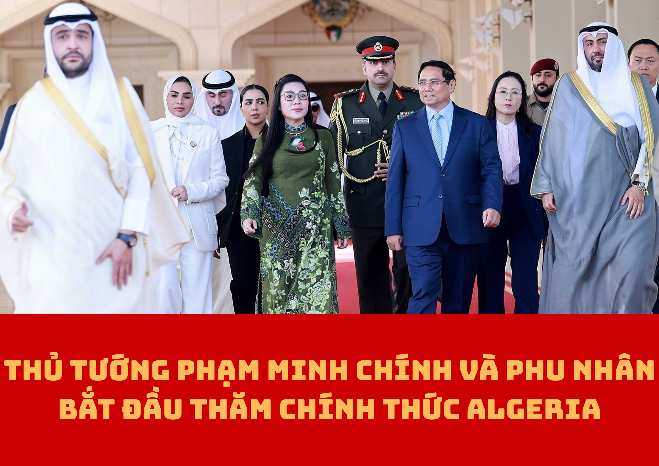 Sau khi kết thúc tốt đẹp chuyến thăm chính thức Nhà nước Kuwait, Thủ tướng Chính phủ Phạm Minh Chính cùng Phu nhân và Đoàn đại biểu cấp cao Việt Nam đã tới sân bay quốc tế Houari Boumediene Alger, bắt đầu thăm chính thức Algeria từ ngày 18-20/11 theo lời mời của Thủ tướng Cộng hòa Algeria Dân chủ Nhân dân Sifi Ghrieb.