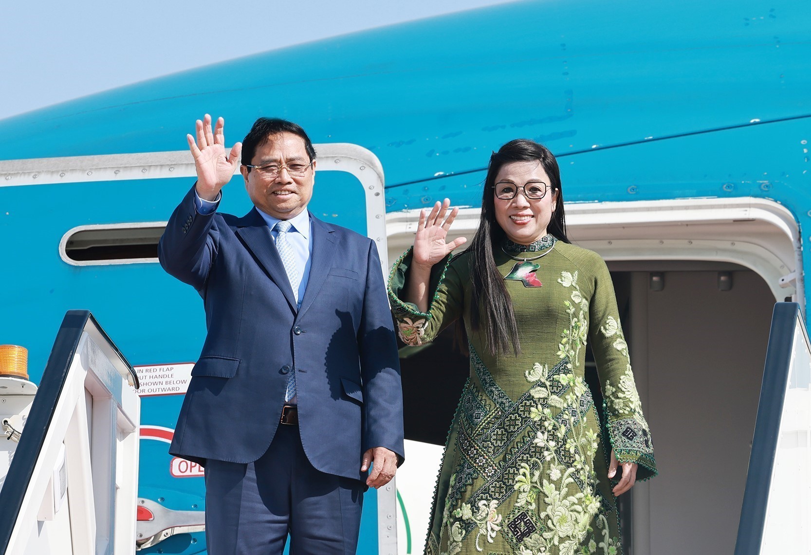 Thủ tướng Phạm Minh Chính và Phu nhân Lê Thị Bích Trân rời Kuwait, tiếp tục lên đường thăm chính thức Algeria. Ảnh: Dương Giang-TTXVN