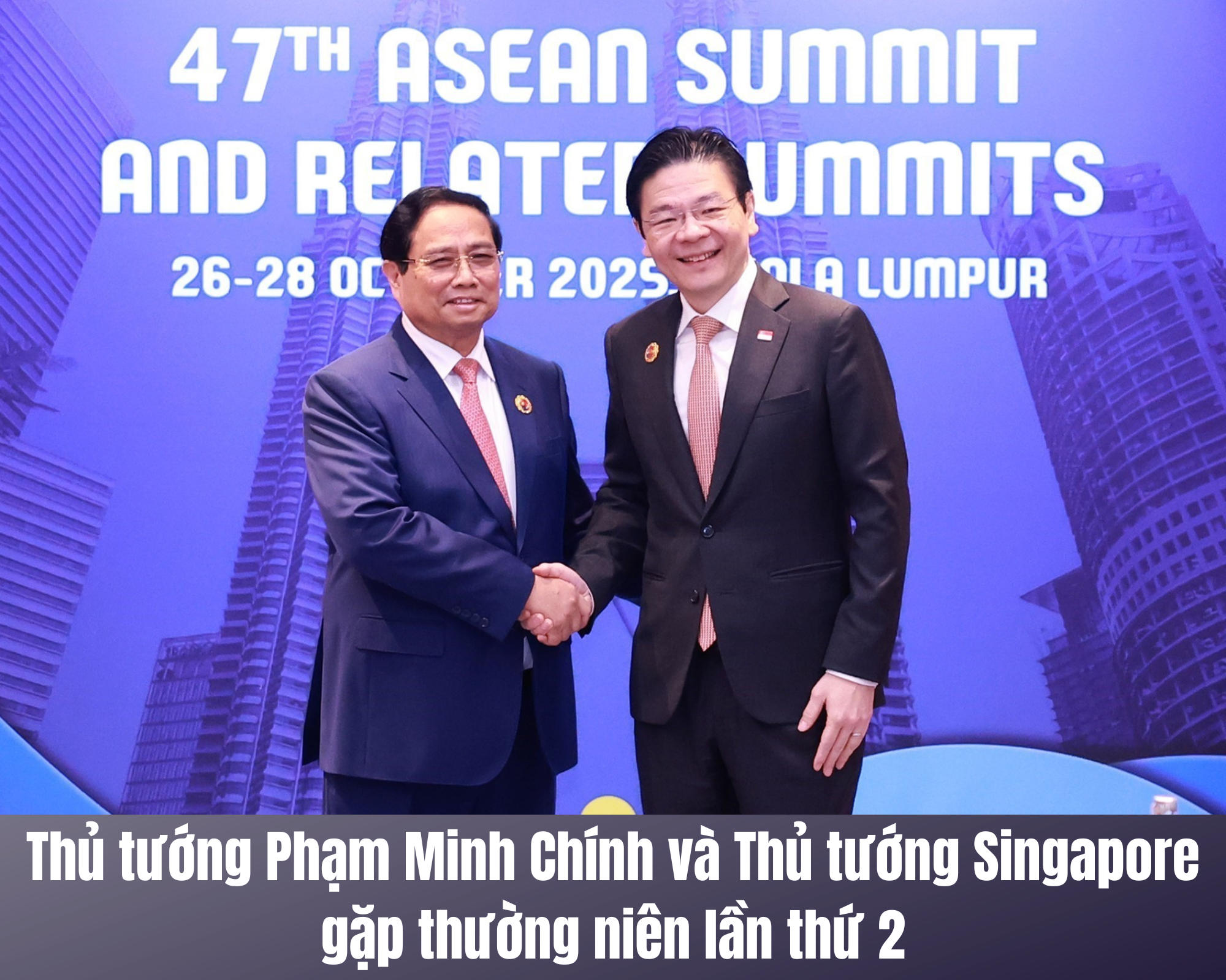 Nhân dự Hội nghị Cấp cao Hiệp hội Các quốc gia Đông Nam Á (ASEAN) lần thứ 47 và các Hội nghị liên quan tại Kuala Lumpur, Malaysia, sáng 28/10, Thủ tướng Chính phủ Phạm Minh Chính và Thủ tướng Singapore Lawrence Wong đã có cuộc họp thường niên lần thứ 2.