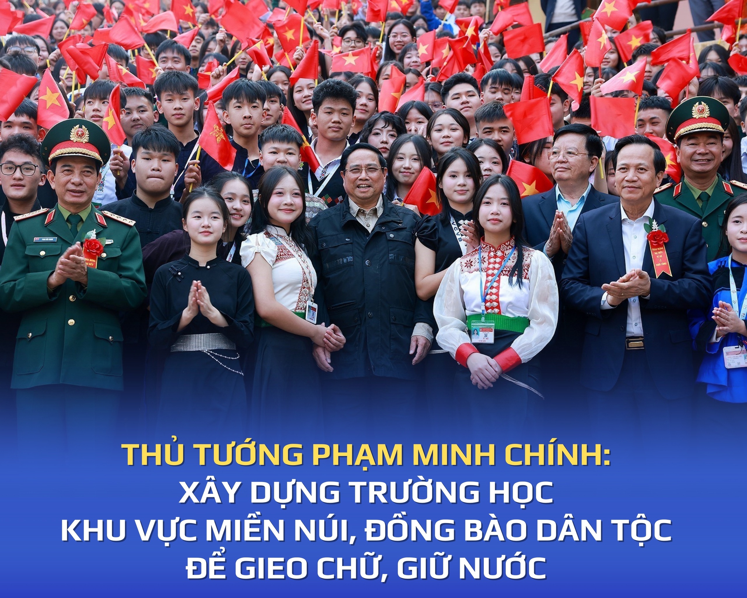 Nhấn mạnh, phải gieo chữ để giữ nước, biến những ngôi trường thành nơi gieo con chữ, ươm mầm tri thức, thắp sáng ước mơ, hiện thực hóa khát vọng của con em đồng bào dân tộc thiểu số và miền núi, Thủ tướng Chính phủ mong muốn mỗi gia đình, cộng đồng luôn là điểm tựa vững chắc, là chỗ dựa tinh thần, vật chất, chia sẻ niềm vui, nỗi buồn, thấu hiểu khó khăn, thách thức với từng lứa tuổi của các em học sinh.
