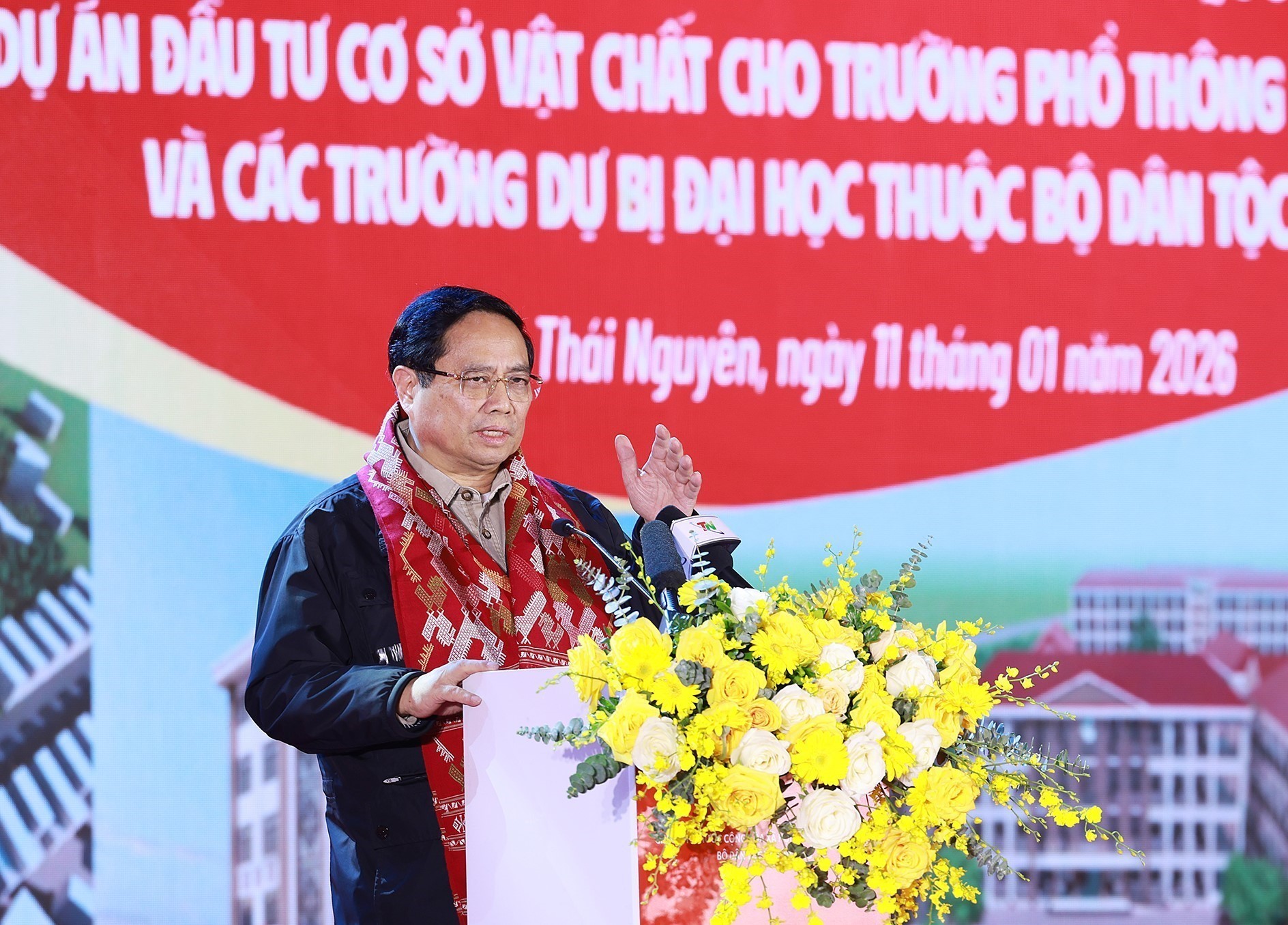 Chiều 11/1/2026, Thủ tướng Phạm Minh Chính dự Lễ khởi công Công trình chào mừng đại hội Đảng toàn quốc lần thứ XIV: Dự án đầu tư cơ sở vật chất cho trường phổ thông vùng cao Việt Bắc và các trường dự bị đại học thuộc Bộ Dân tộc và Tôn giáo”.