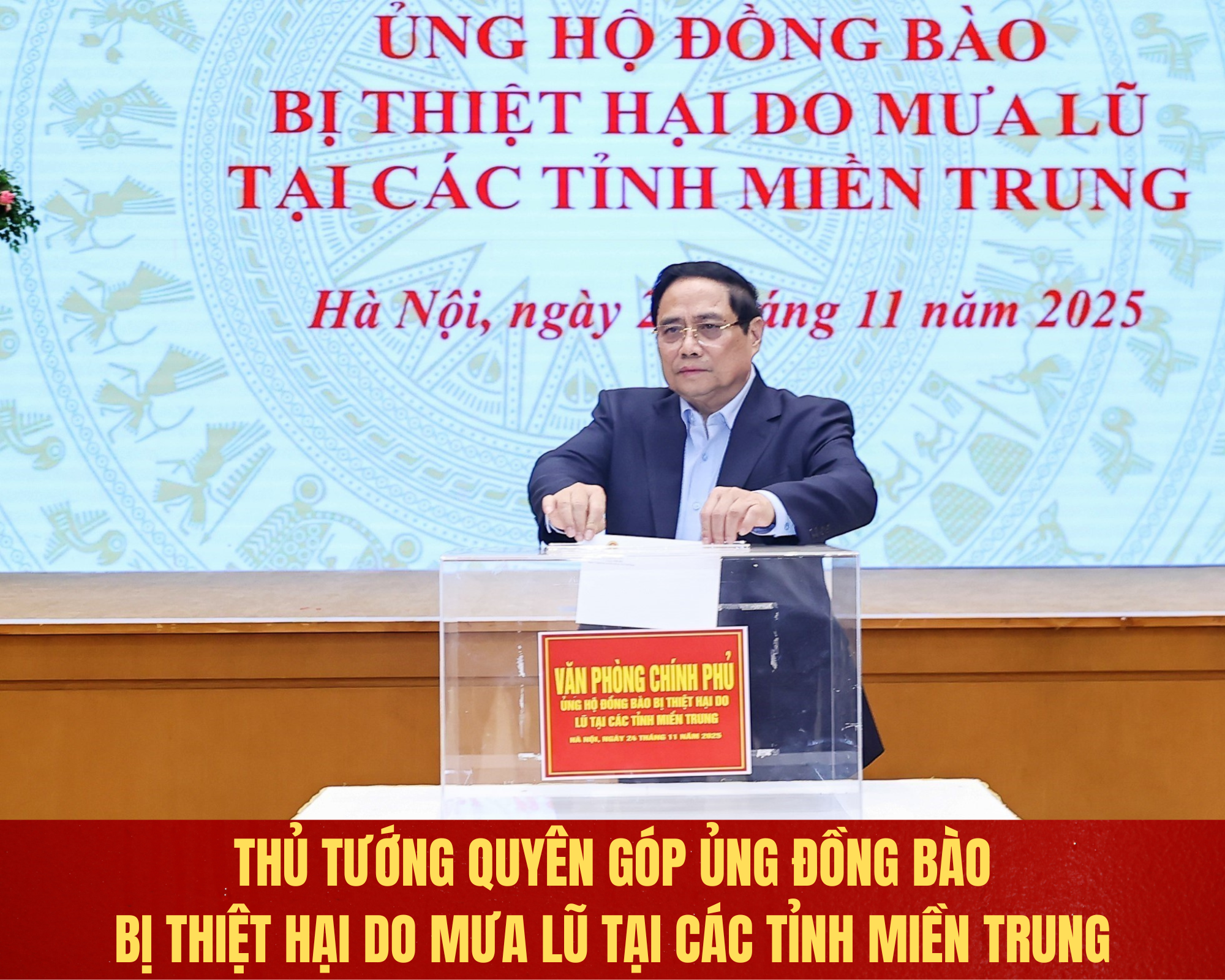 Chiều 24/11, tại Trụ sở Chính phủ, Thủ tướng Chính phủ Phạm Minh Chính cùng lãnh đạo Chính phủ và tập thể Văn phòng Chính phủ tổ chức lễ phát động, tổ chức quyên góp ủng hộ đồng bào bị thiệt hại do bão lũ gây ra.