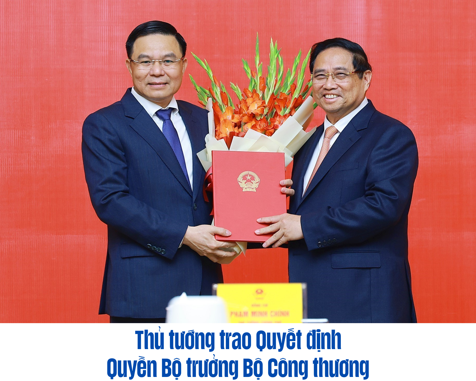 Trao Quyết định bổ nhiệm cho đồng chí Lê Mạnh Hùng, Thủ tướng Phạm Minh Chính chúc mừng đồng chí được Đảng, Nhà nước tin tưởng giao đảm nhiệm giữ trọng trách quan trọng - người đứng đầu Bộ Công Thương - một bộ đa ngành, đa lĩnh vực, đóng vai trò “trụ cột” của nền kinh tế, tiên phong dẫn dắt phát triển nền công nghiệp, thương mại, dịch vụ của đất nước.