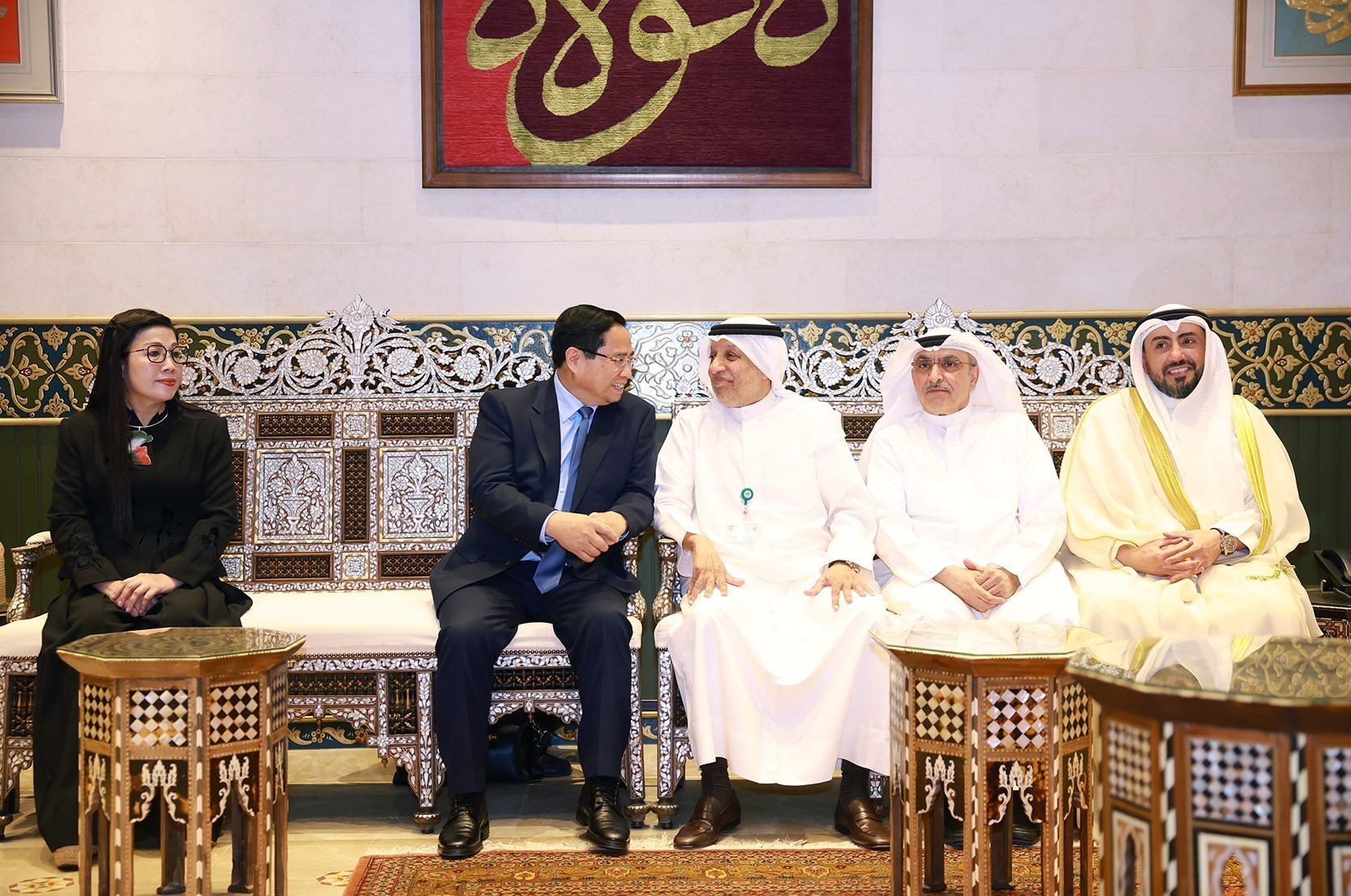 Chiều 16/11, Thủ tướng Chính phủ Phạm Minh Chính đã thăm Tòa nhà di sản văn hoá Arập và tại đây Thủ tướng đã làm việc với Tổng Giám đốc Waleed AL-Bahar và các cộng sự của Quỹ Kuwait vì sự phát triển kinh tế Arập.