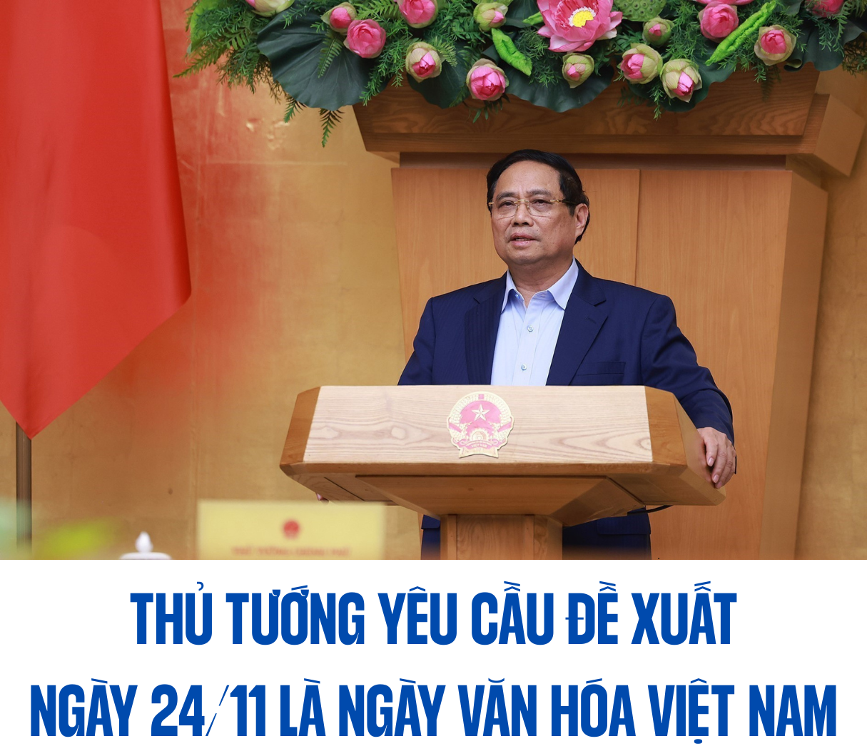 Kết luận phiên họp, Thủ tướng Chính phủ Phạm Minh Chính yêu cầu các bộ, ngành, địa phương liên quan đề xuất ngay về việc chọn ngày 24/11 là ngày Văn hóa Việt Nam, ngày cách đây 79 năm, Chủ tịch Hồ Chí Minh khai mạc Hội nghị văn hóa toàn quốc lần thứ nhất.