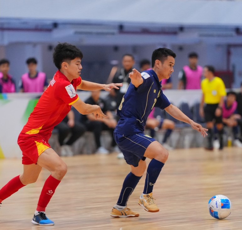 Trận đấu giữa tuyển futsal Việt Nam và tuyển futsal Thái Lan ở lượt cuối bảng A giải futsal Đông Nam Á 2026 mang tính chất quyết định ngôi đầu bảng. Ngay phút 1, Thái Lan đã tạo sức ép khi Osamanmusa liên tiếp dứt điểm, buộc thủ môn Phạm Văn Tú phải trổ tài cứu thua. Phía ĐT Việt Nam cũng đáp trả với cơ hội đáng chú ý ở phút 3 khi Nhan Gia Hưng sút trúng xà ngang.
