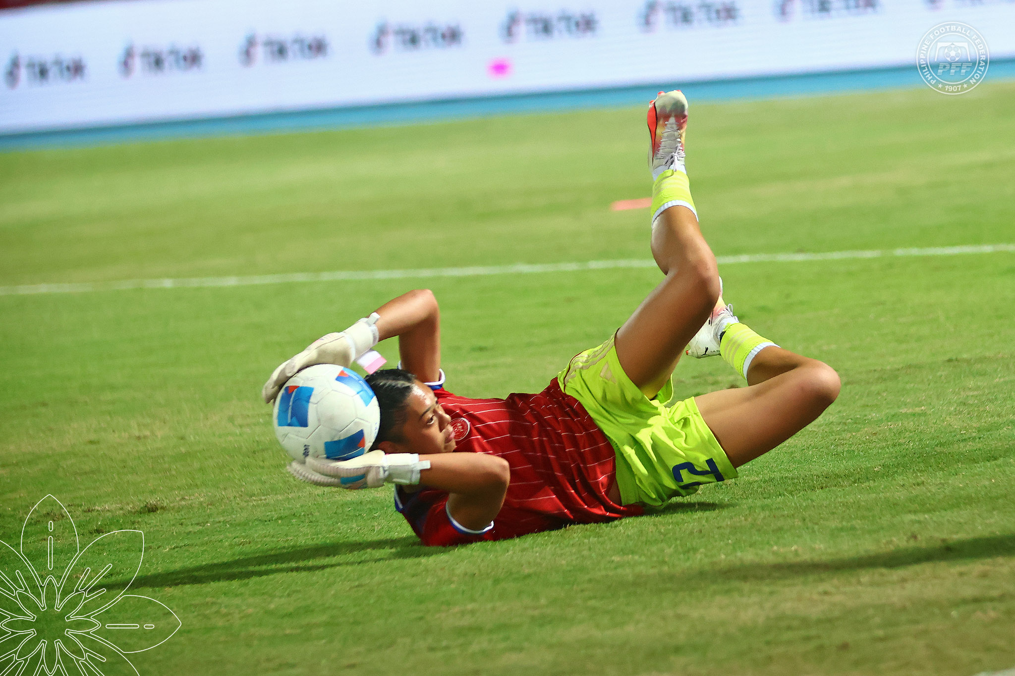 Lượt sút thứ 3: Kim Thanh đoán đúng hướng nhưng cầu thủ của ĐT nữ Philippines vẫn sút thành công. Trúc Hương sau đó đá luân lưu thành công. Tỉ số đá luân lưu đang là 3-3.