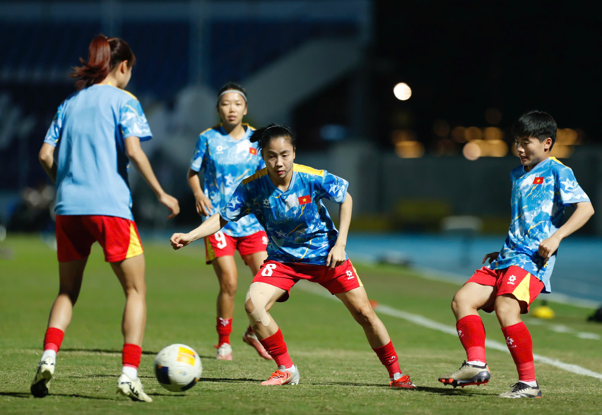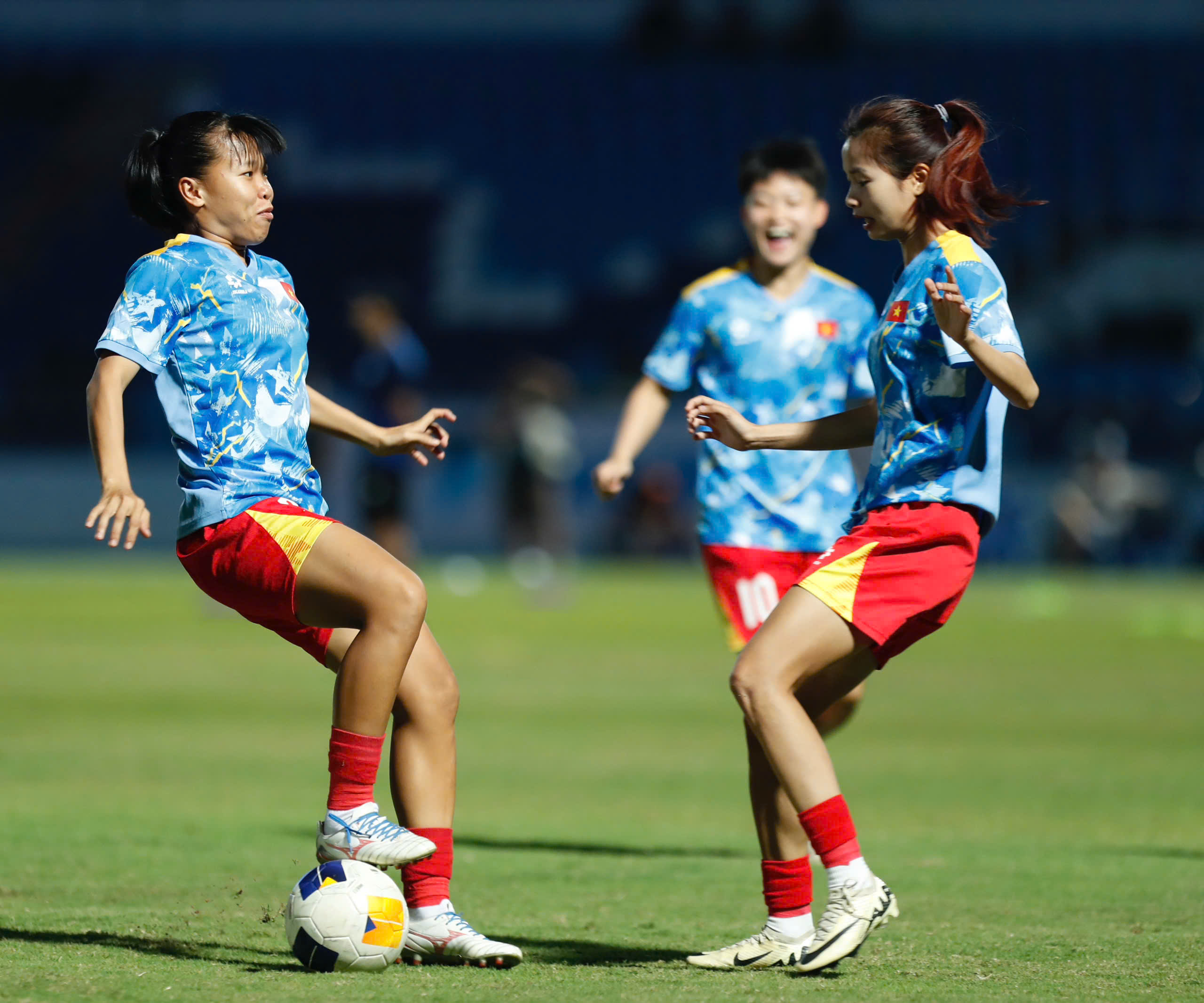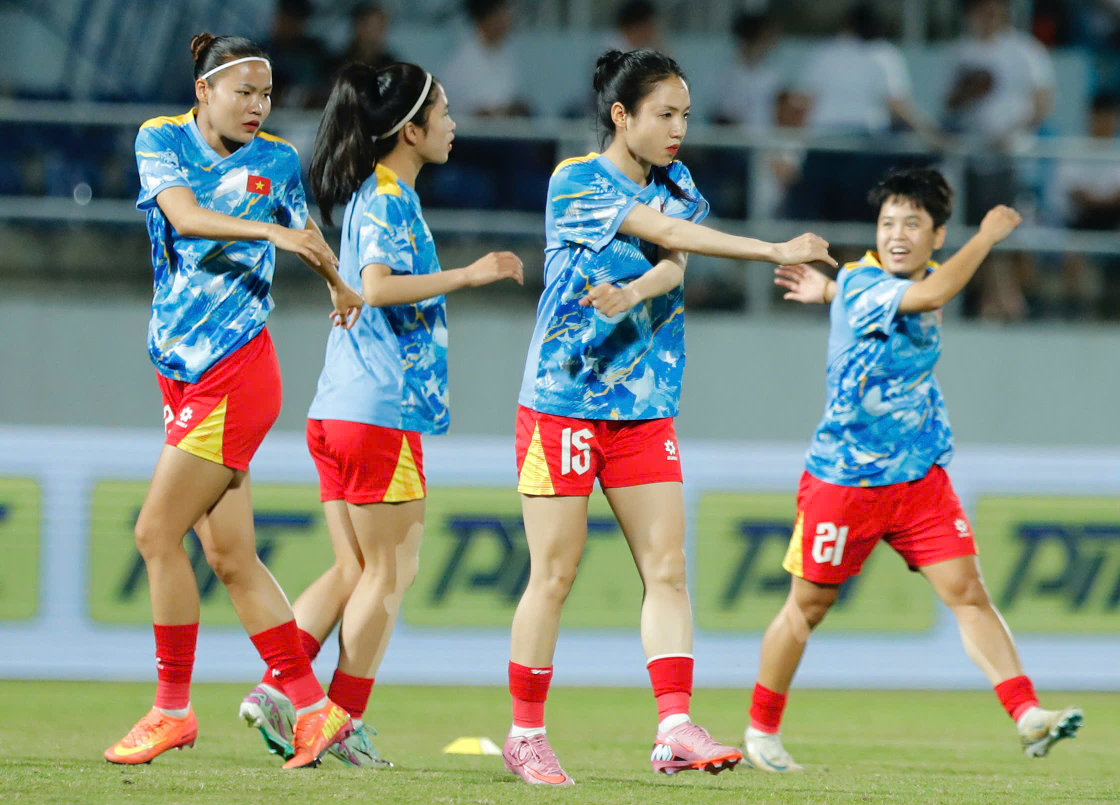 Các cầu thủ ĐT nữ Việt Nam khởi động - Ảnh: Tuấn Phạm