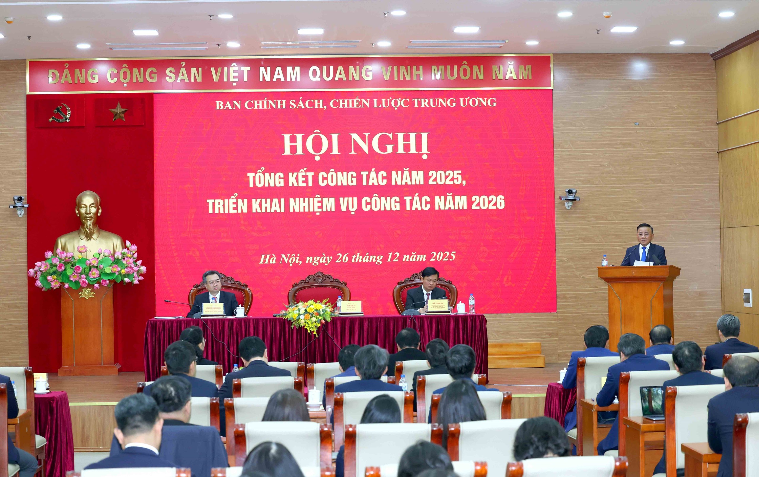 Sáng 26/12, Ban Chính sách, chiến lược Trung ương tổ chức hội nghị tổng kết công tác năm 2025, triển khai nhiệm vụ năm 2026.