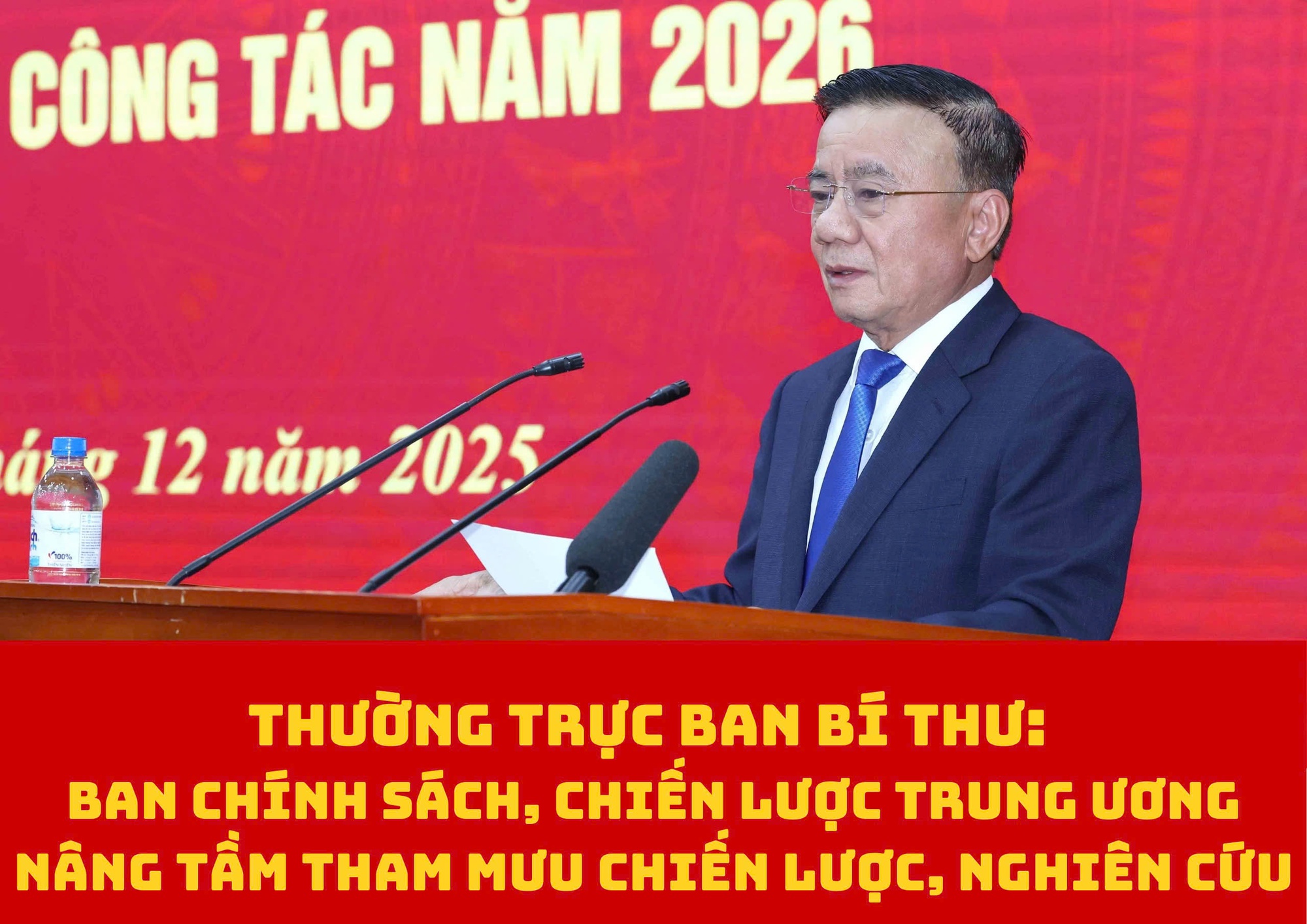 Theo Báo cáo tóm tắt kết quả công tác năm 2025, với vai trò là cơ quan tham mưu chiến lược của Đảng về kinh tế - xã hội, Ban Chính sách, chiến lược Trung ương đã tập trung triển khai các nhiệm vụ nhằm kịp thời tham mưu, đề xuất Lãnh đạo chủ chốt, với Bộ Chính trị, Ban Bí thư những chủ trương, định hướng phục vụ công tác lãnh đạo, chỉ đạo, điều hành phát triển kinh tế - xã hội, qua đó góp phần vào kết quả chung phát triển kinh tế - xã hội đất nước cũng như thực hiện các mục tiêu Nghị quyết Đại hội XIII của Đảng.