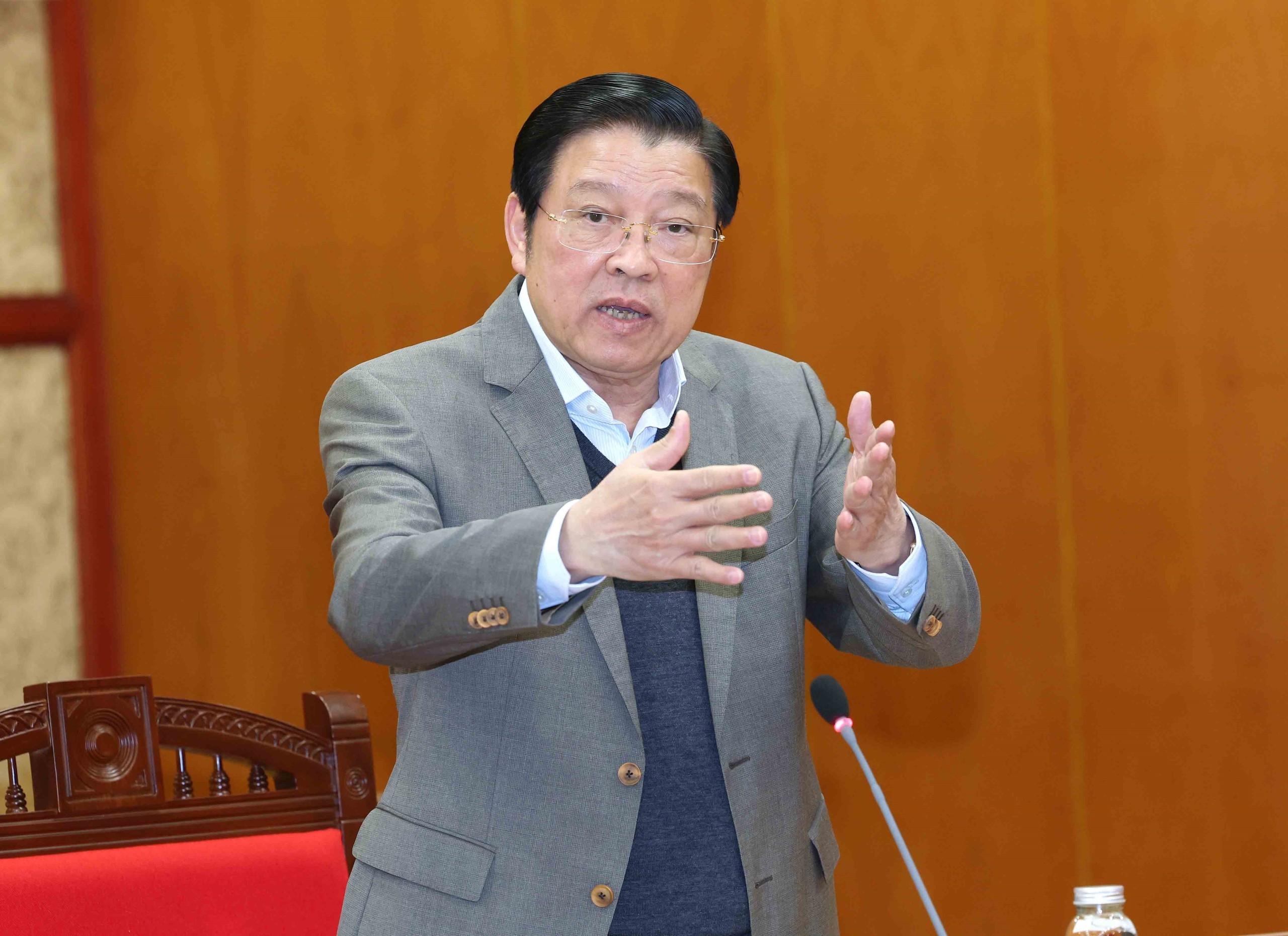 Đồng chí Phan Đình Trạc, Uỷ viên Bộ Chính trị, Bí thư Trung ương Đảng, Trưởng Ban Nội chính Trung ương phát biểu tại buổi làm việc. Ảnh: Phương Hoa – TTXVN