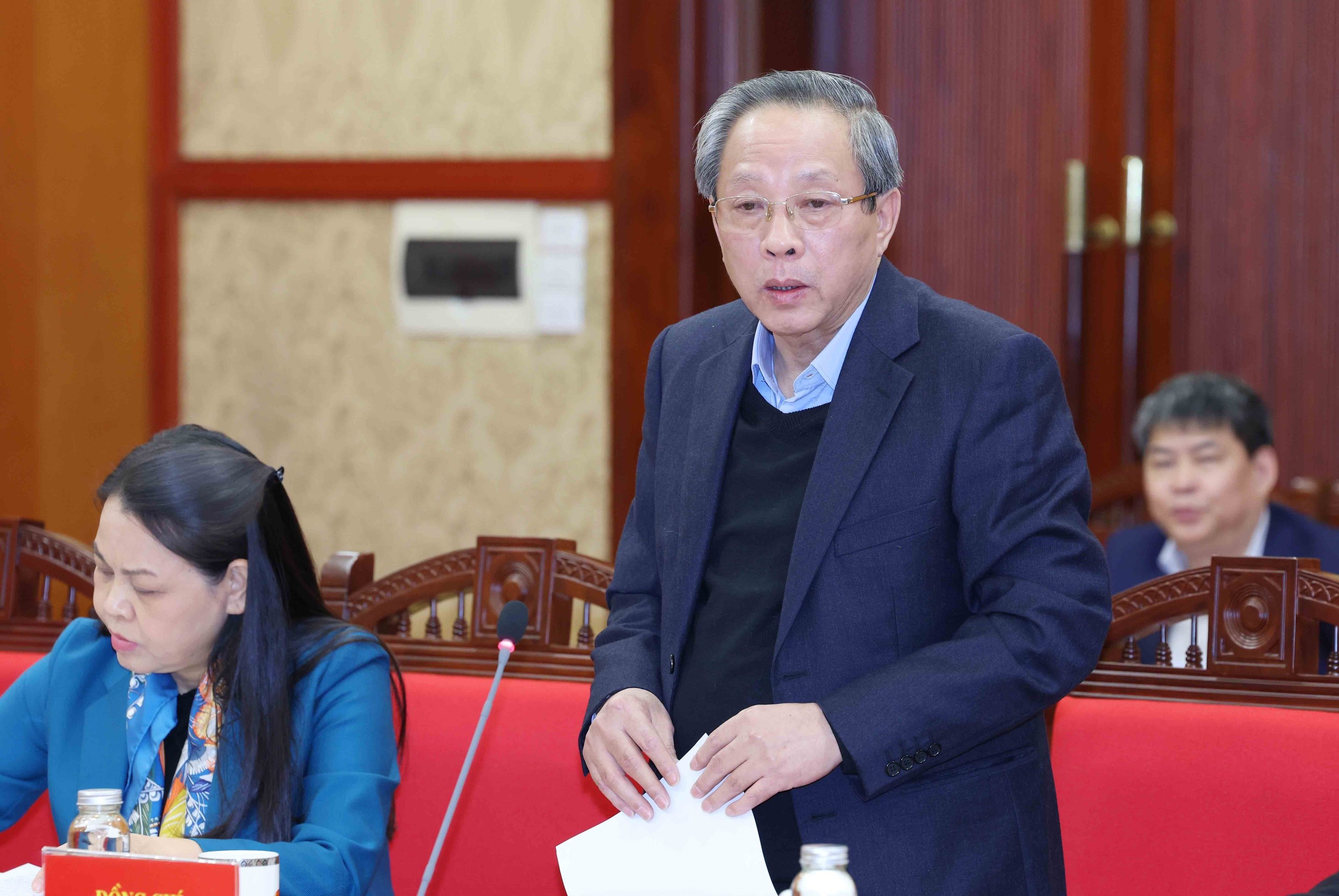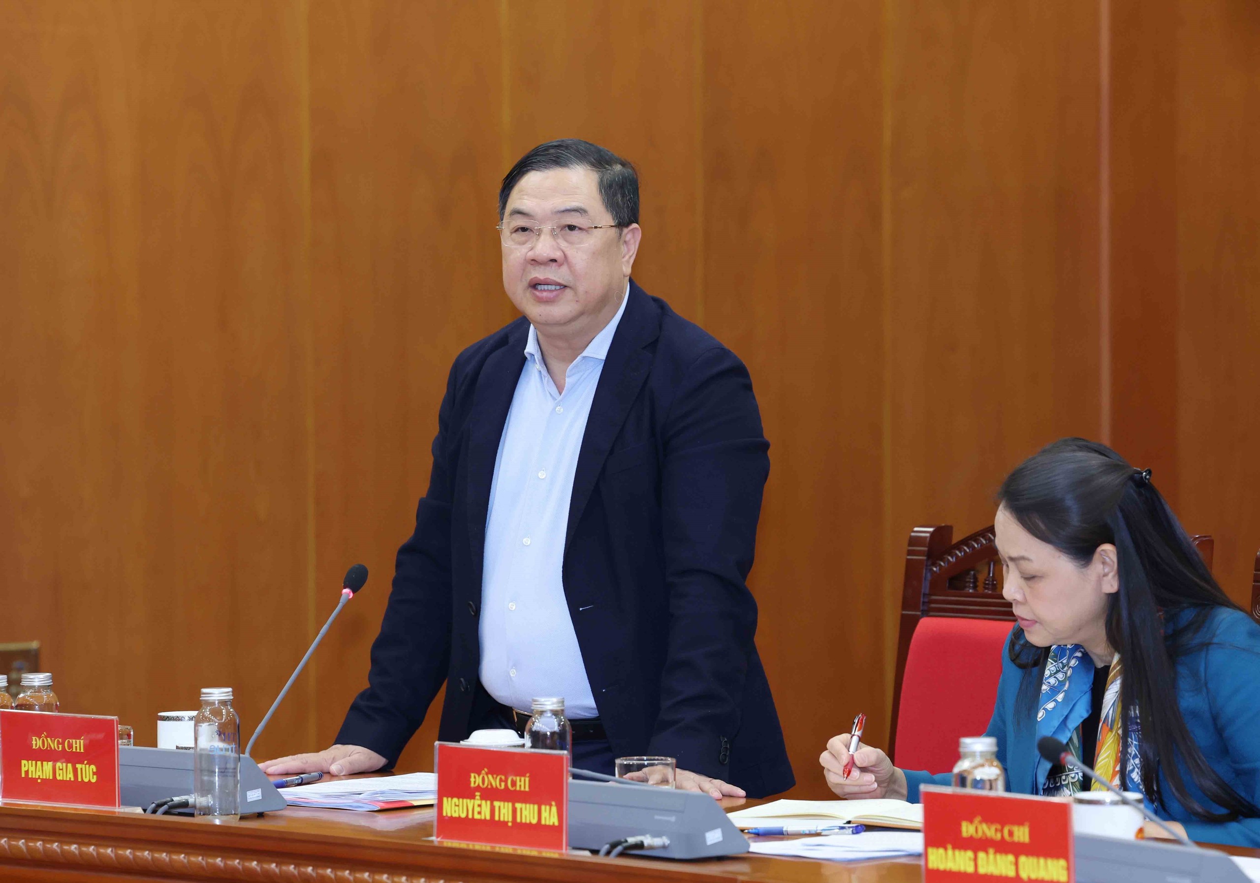 Đồng chí Phạm Gia Túc, Uỷ viên Trung ương Đảng, Chánh Văn phòng Trung ương Đảng phát biểu tại buổi làm việc. Ảnh: Phương Hoa – TTXVN