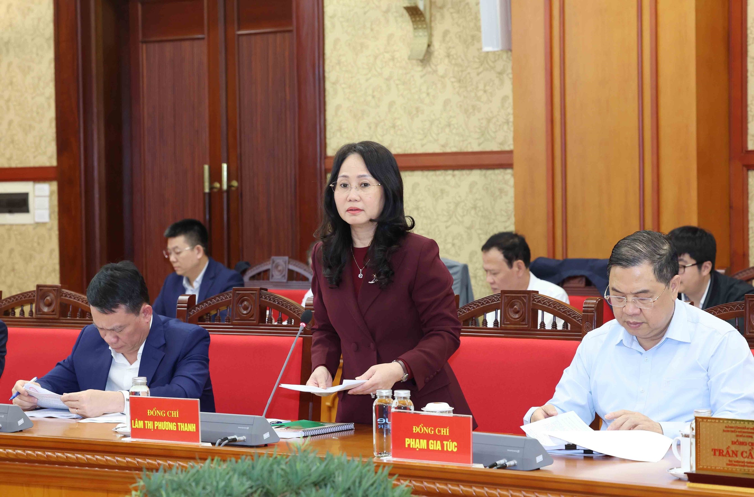 Đồng chí Lâm Thị Phương Thanh, Ủy viên Trung ương Đảng, Phó Chánh Văn phòng thường trực Văn phòng Trung ương phát biểu. Ảnh: Phương Hoa - TTXVN