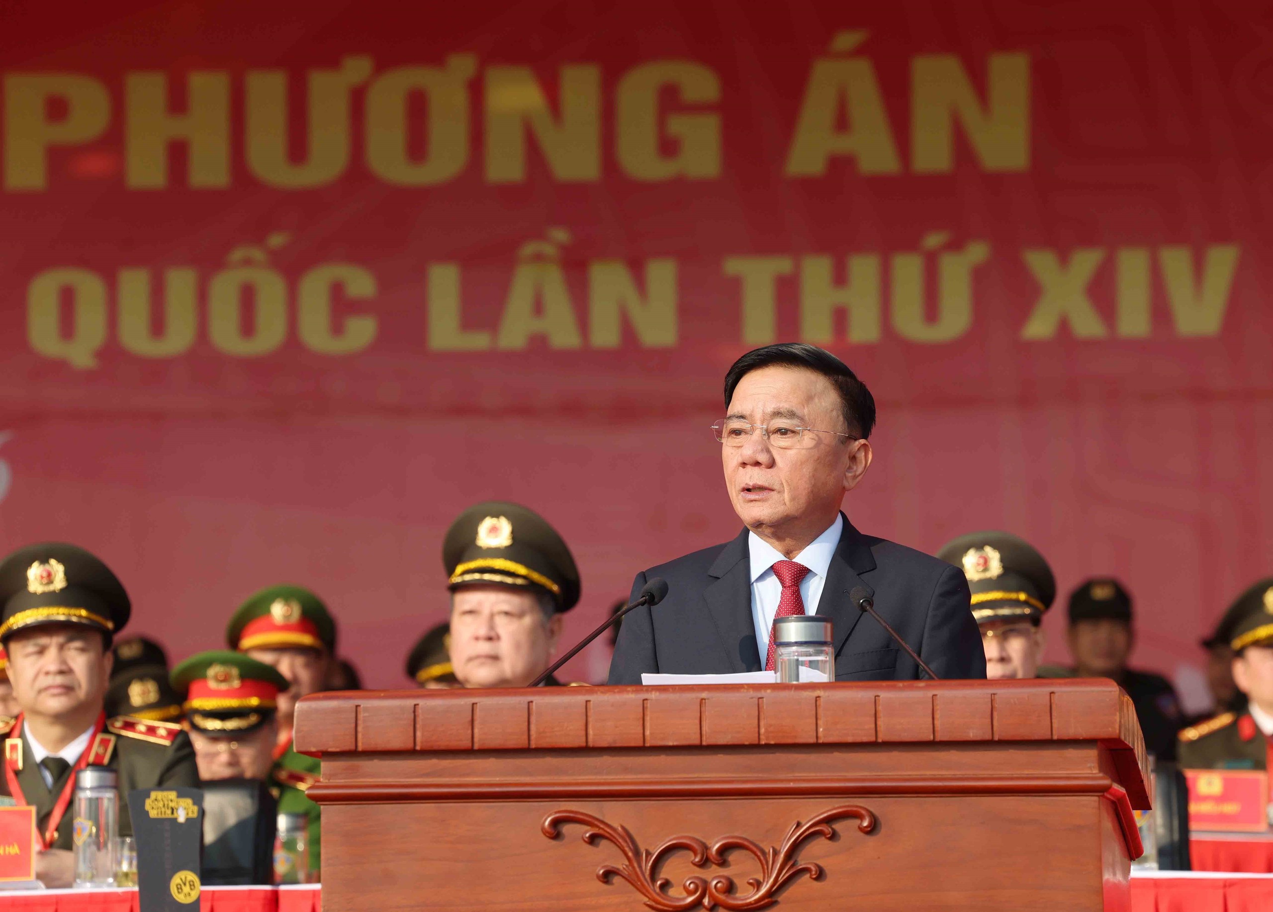 Cụ thể, Thường trực Ban Bí thư nhấn mạnh yêu cầu tiếp tục quán triệt sâu sắc và thực hiện nghiêm túc chỉ đạo của Bộ Chính trị, Ban Bí thư, đồng chí Tổng Bí thư Tô Lâm, tập trung toàn lực đảm bảo tuyệt đối an ninh, an toàn Đại hội XIV của Đảng; tuyệt đối không được chủ quan, lơ là hay mất cảnh giác trong mọi tình huống. “Lễ xuất quân và diễn tập hôm nay chính là dấu mốc chuyển trạng thái của toàn lực lượng sang chế độ sẵn sàng chiến đấu cao nhất”, Thường trực Ban Bí thư nêu rõ.