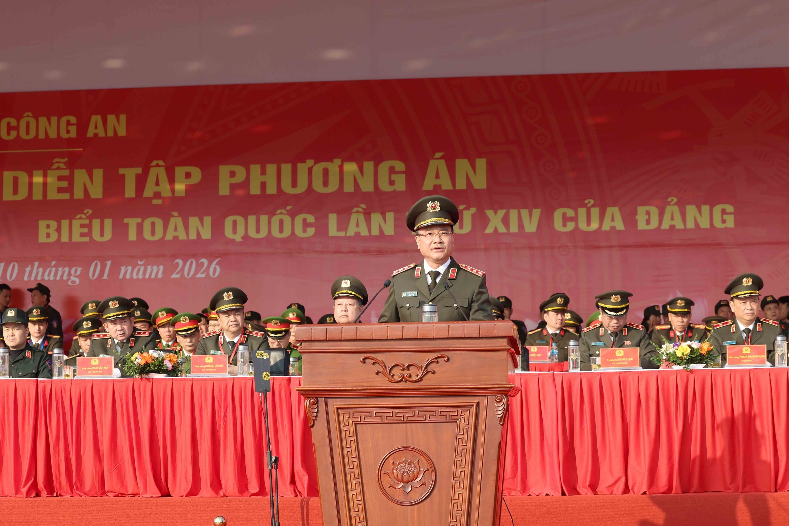 Phát biểu chỉ đạo tại Lễ xuất quân, diễn tập, Thường trực Ban Bí thư Trần Cẩm Tú nhấn mạnh, chỉ còn đúng 10 ngày nữa là Đại hội XIV của Đảng chính thức diễn ra. Đây là thời điểm yêu cầu về công tác bảo vệ an ninh, an toàn được đặt ở cấp độ cao nhất. Trong bối cảnh tình hình thế giới, khu vực tiếp tục có nhiều biến động nhanh chóng, phức tạp, khó lường, đặc biệt là trong thời điểm này, các thế lực thù địch tiếp tục lợi dụng, tăng cường các hoạt động chống phá với nhiều hình thức, thủ đoạn rất tinh vi và phức tạp.