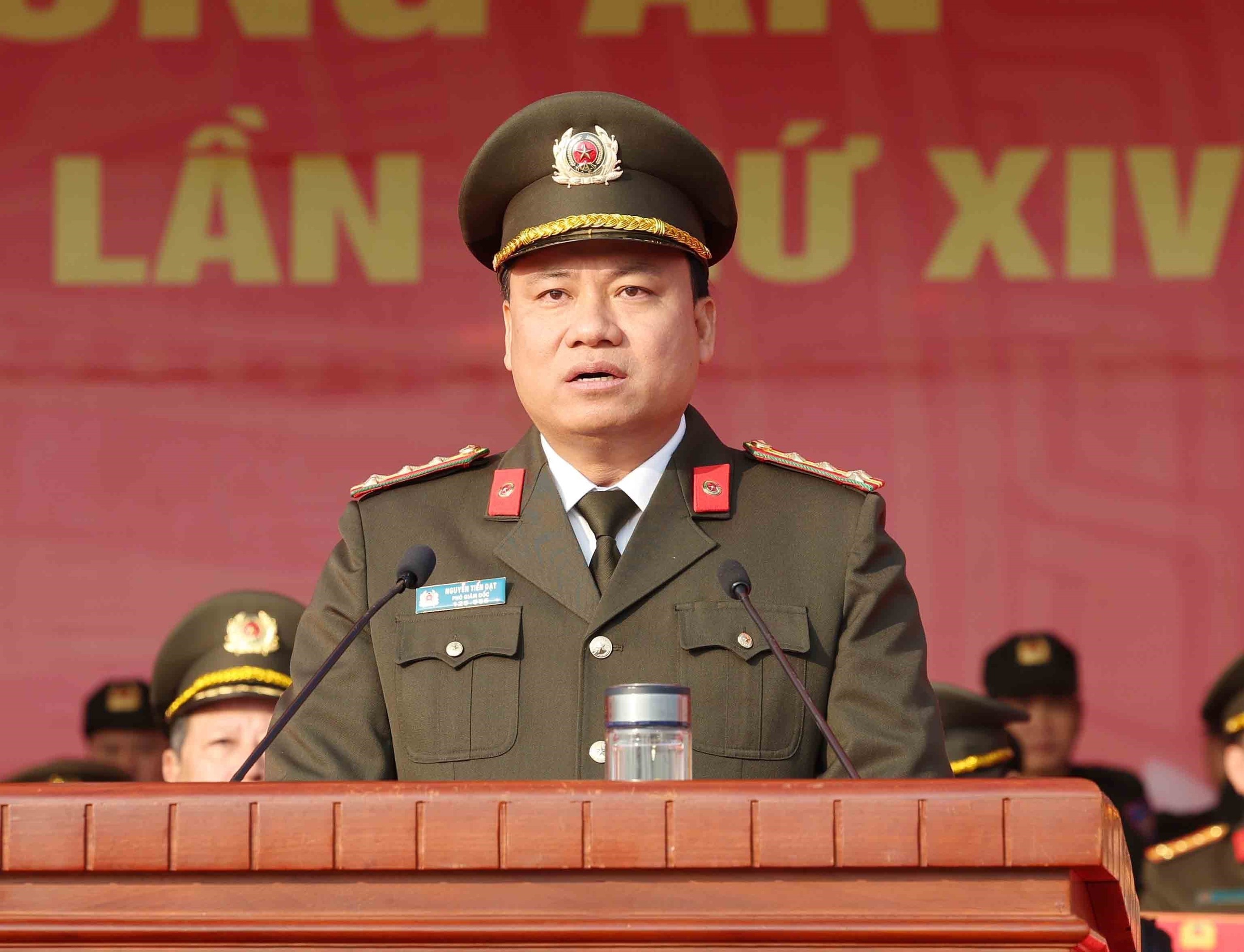 Đại tá Nguyễn Tiến Đạt, Phó Giám đốc Công an thành phố Hà Nội phát biểu tại buổi lễ. Ảnh: Phương Hoa - TTXVN