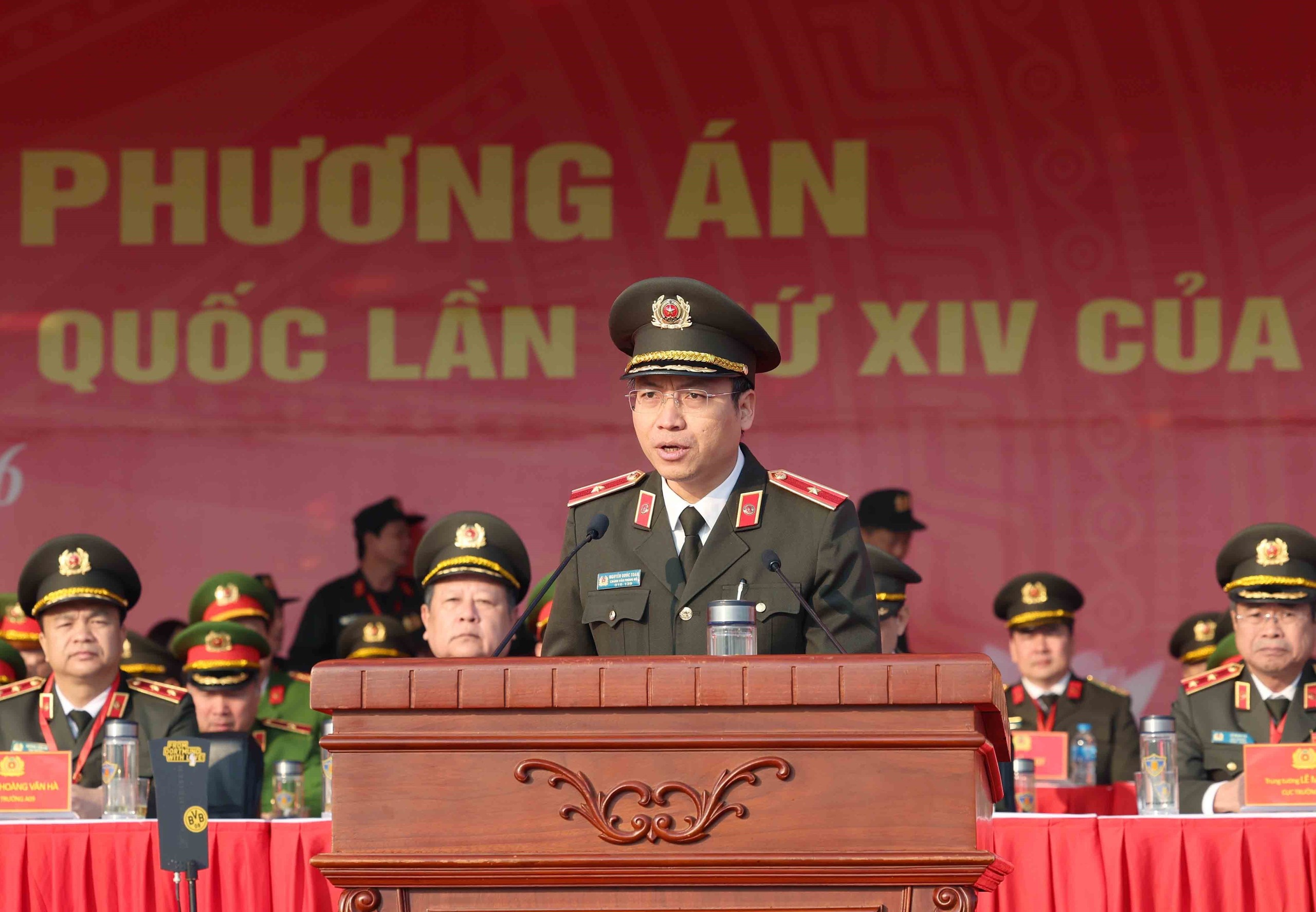 Đại diện một trong những lực lượng tham gia thực hiện nhiệm vụ, lãnh đạo Công an thành phố Hà Nội phát biểu nhận nhiệm vụ và hứa quyết tâm bảo vệ tuyệt đối an ninh, an toàn Đại hội XIV của Đảng.