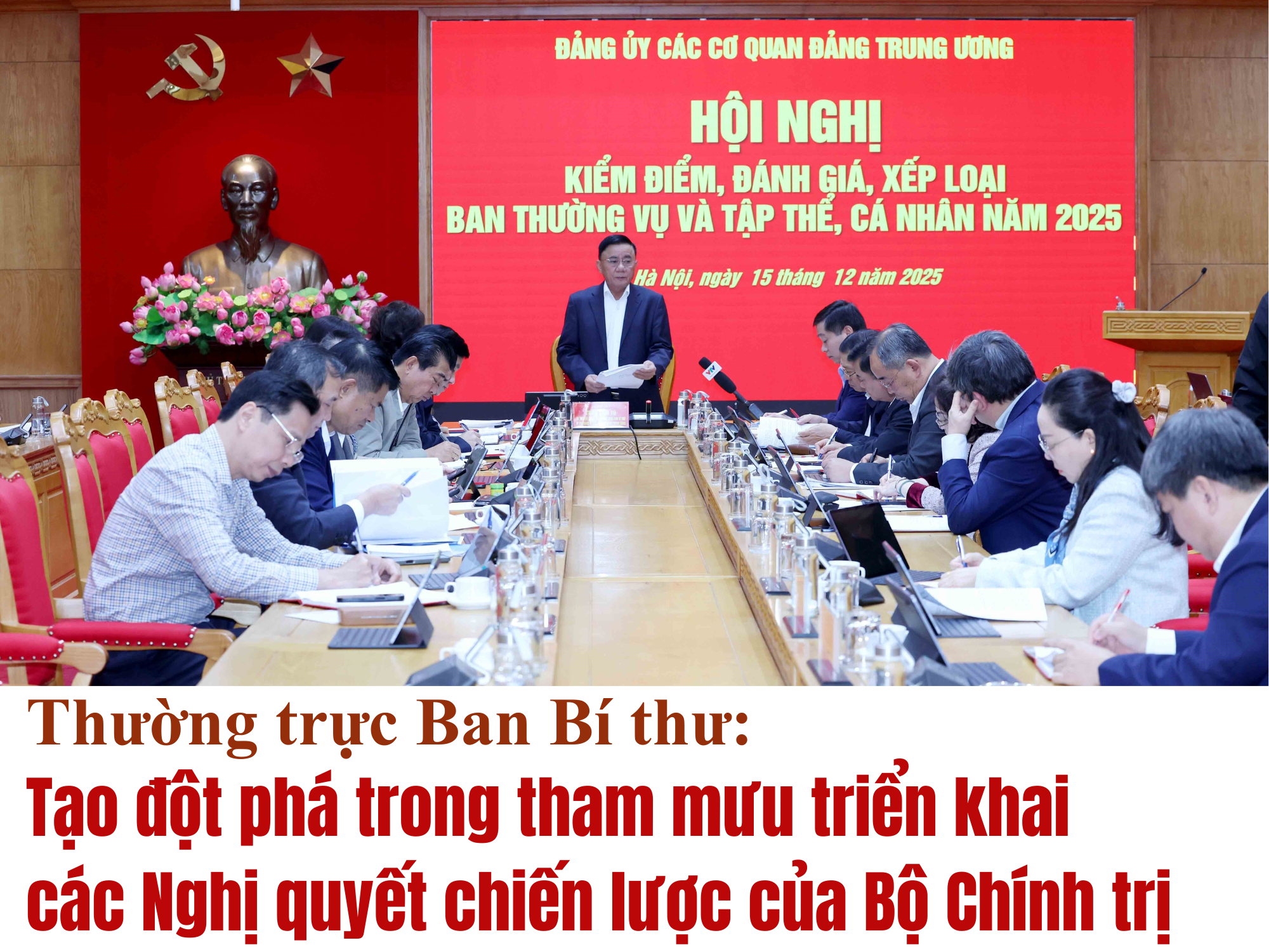 Báo cáo kiểm điểm nêu rõ, trong năm 2025, Ban Thường vụ Đảng ủy các cơ quan Đảng Trung ương đã phát huy tinh thần đoàn kết, thống nhất, tập trung lãnh đạo và đề xuất Ban Chấp hành Đảng bộ lãnh đạo, chỉ đạo toàn Đảng bộ hoàn thành khối lượng lớn công việc, bảo đảm đúng quy định của Đảng, đáp ứng tốt yêu cầu nhiệm vụ được giao.