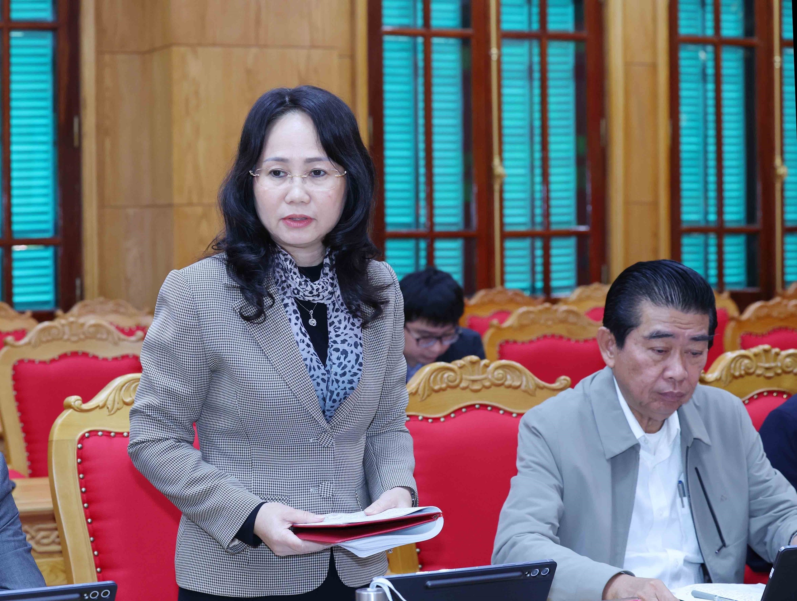 Đồng chí Lâm Thị Phương Thanh, Uỷ viên Trung ương Đảng, Phó Chánh Văn phòng Thường trực Văn phòng Trung ương Đảng phát biểu tại hội nghị. Ảnh: Phương Hoa – TTXVN
