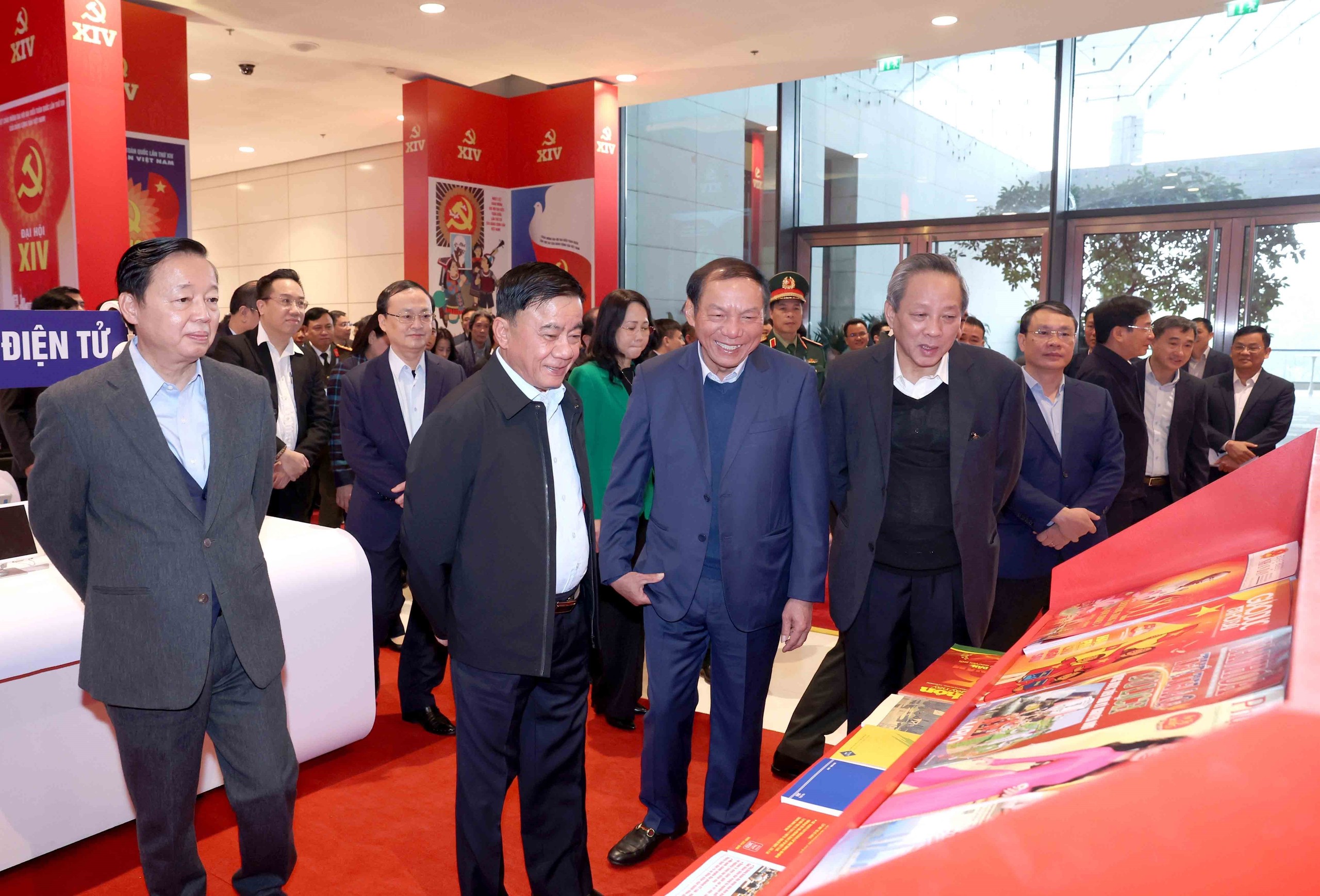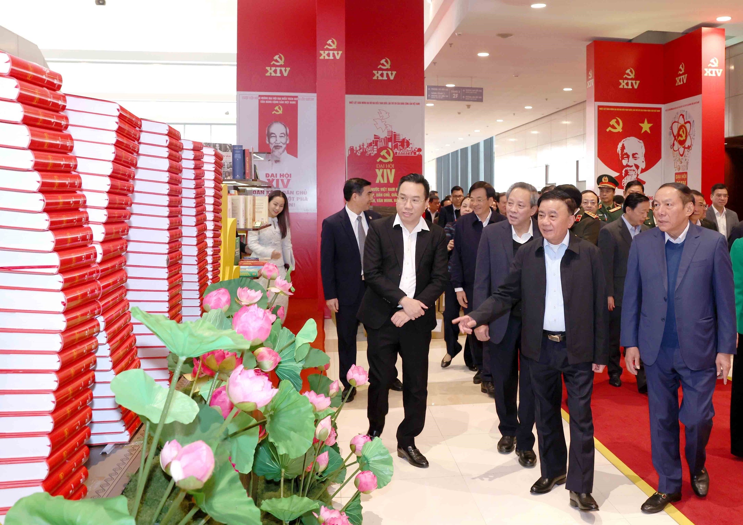 Thường trực Ban Bí thư Trần Cẩm Tú kiểm tra Khu trưng bày các ấn phẩm xuất bản tại Đại hội. Ảnh: Phương Hoa – TTXVN