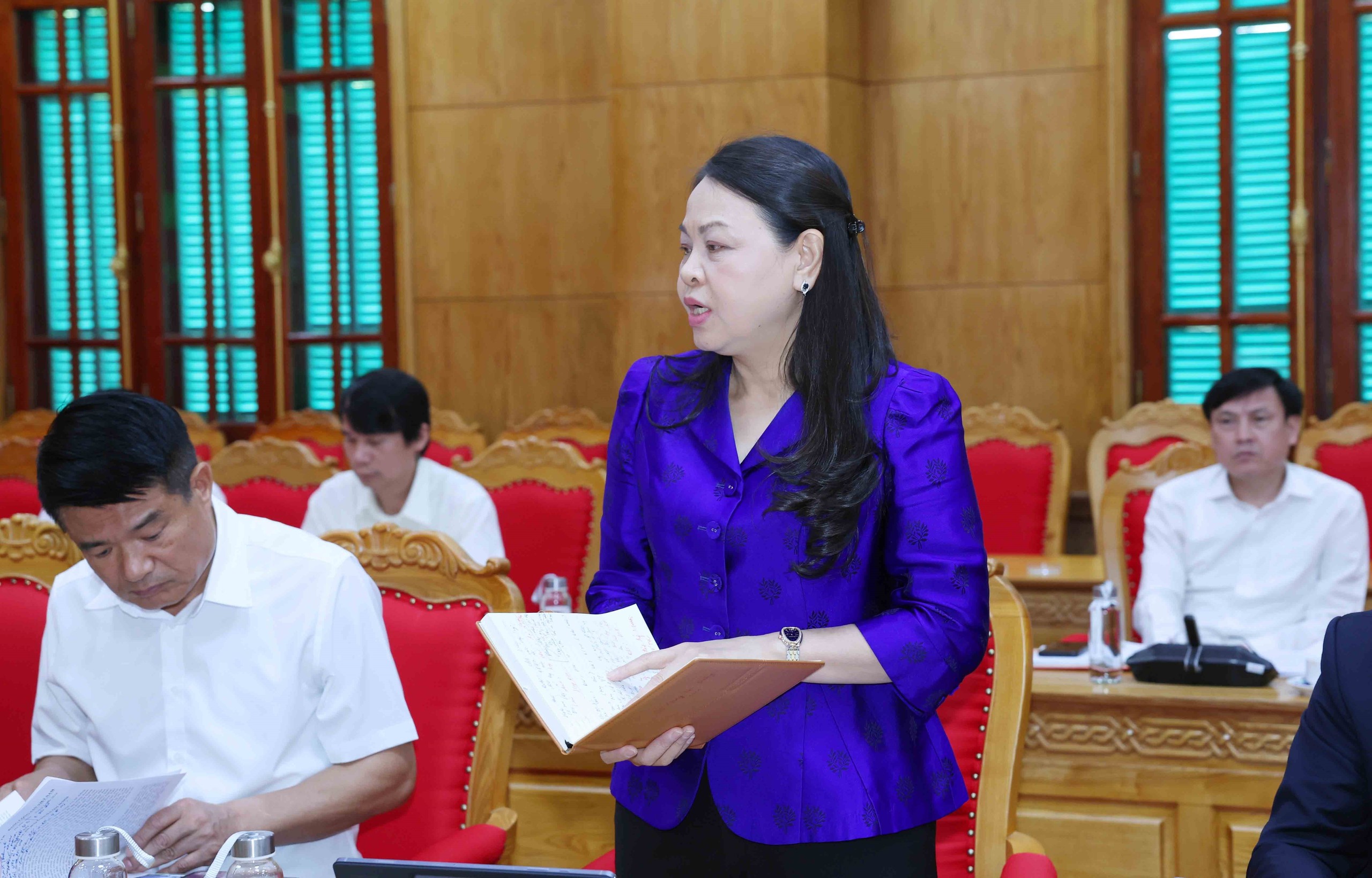 Đồng chí Nguyễn Thị Thu Hà, Uỷ viên Trung ương Đảng, Phó Chánh Văn phòng Thường trực Văn phòng Trung ương Đảng phát biểu tại hội nghị. Ảnh: Phương Hoa - TTXVN