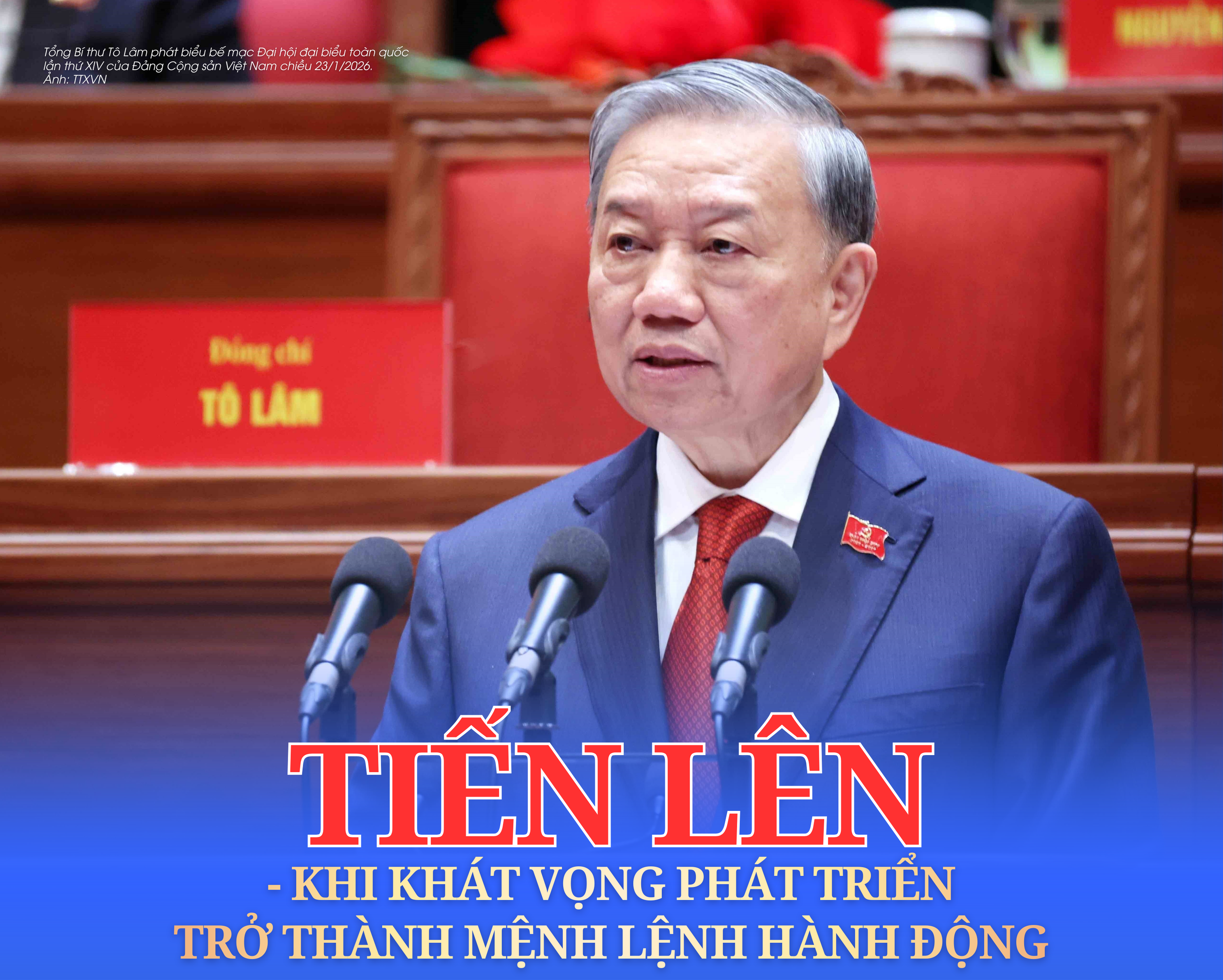 Sau Đại hội XIV, bài viết "Tiến lên! Toàn thắng ắt về ta!" của đồng chí Tổng Bí thư Tô Lâm vang lên như lời hiệu triệu mạnh mẽ cho giai đoạn phát triển mới. Không dừng ở khẳng định niềm tin, bài viết nhấn mạnh yêu cầu hành động quyết liệt, biến nghị quyết thành kết quả cụ thể, lấy Nhân dân làm trung tâm và khát vọng phát triển làm động lực dẫn đường.