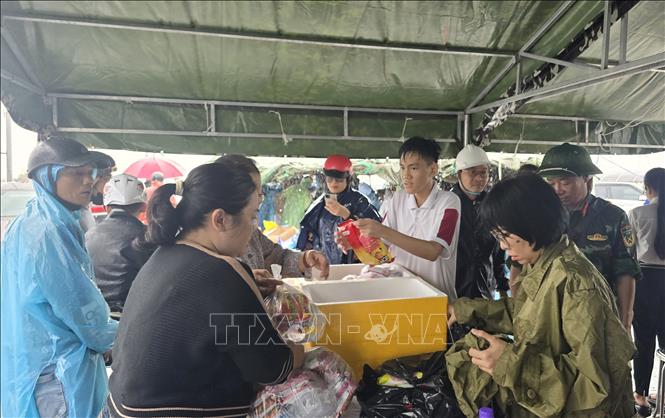 Điểm tiếp tế lương thực, thực phẩm cho người dân ở vùng ngập trong những ngày sơ tán 20-21/11. Ảnh: Đặng Tuấn - TTXVN