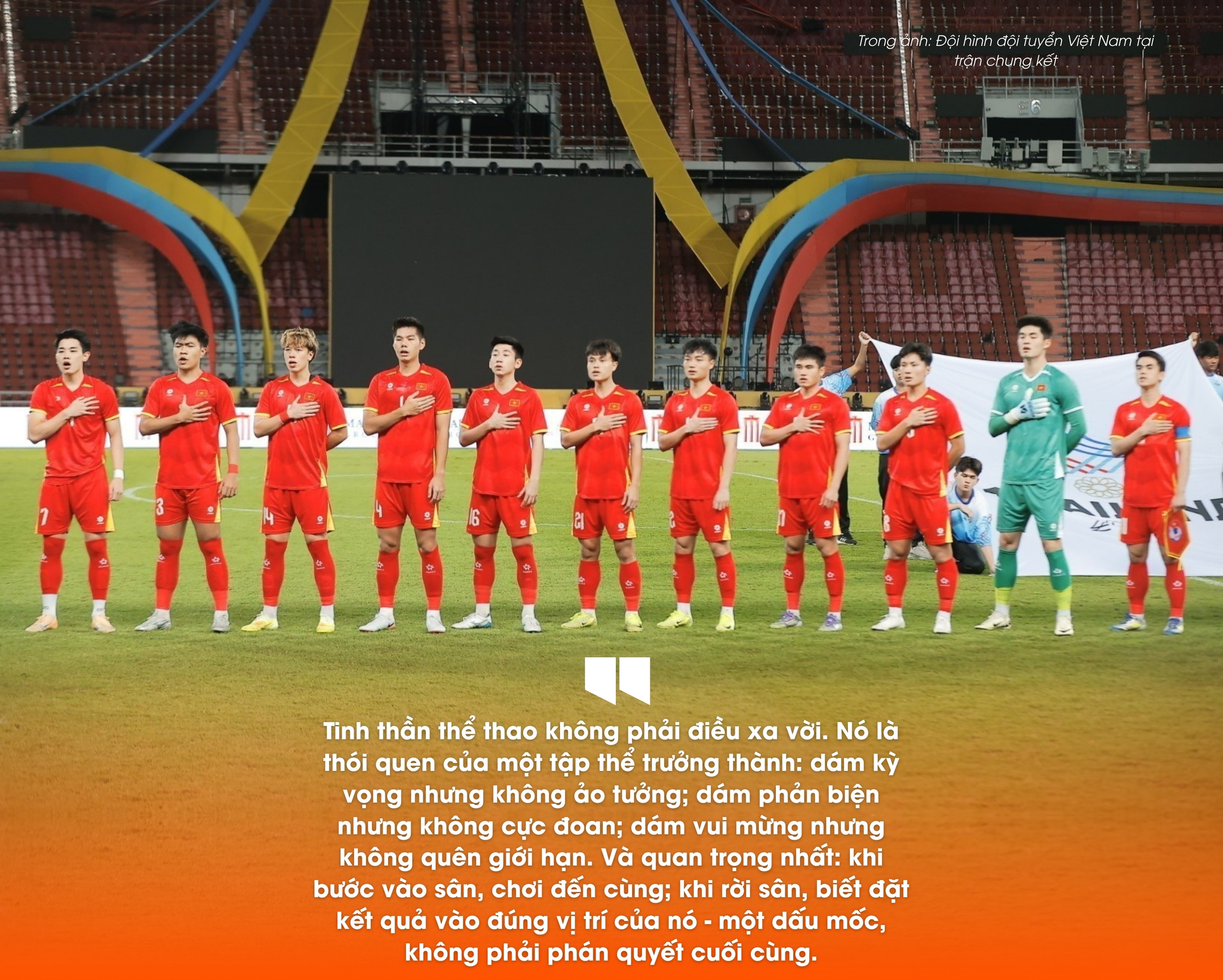 Từ đó, có thể nhìn "tinh thần Việt Nam" tỉnh táo hơn: không phải niềm tin rằng đội tuyển sẽ luôn chiến thắng, mà là sự kiên trì trong cả thắng lẫn thua. Khi chiến thắng, không cần thổi phồng thành kỳ tích vượt xa thực tế. Khi thất bại, cũng không nên vội bi quan hoặc đổ hết lỗi cho ngoại cảnh. Sự cân bằng nằm ở chỗ biết trân trọng nỗ lực, chỉ ra hạn chế và tiếp tục chuẩn bị cho chặng đường kế tiếp.