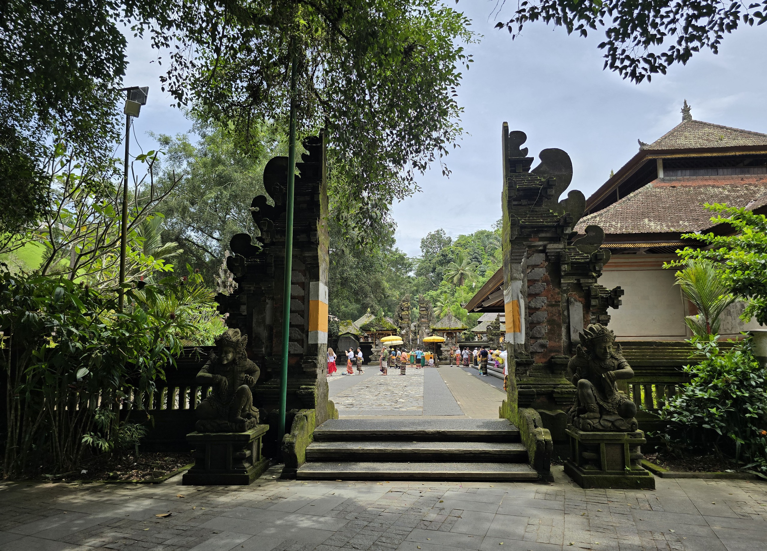 Bước qua cổng đá Candi Bentar, biểu tượng kiến trúc đặc trưng của Bali, bất cứ ai cũng sẽ có cảm giác như bước qua một ranh giới vô hình. Thế giới ồn ào bên ngoài dừng lại, bước vào bên trong là không gian của sự tĩnh tại, nơi mọi hành động đều mang ý nghĩa của lễ nghi.
