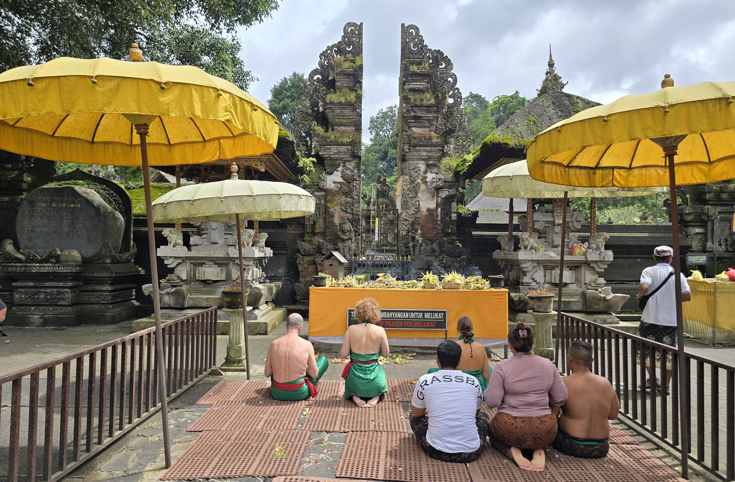 Sau khi hoàn tất nghi lễ thanh tẩy, người dân tiếp tục tiến vào khu đền chính để cầu nguyện. Trong không gian tĩnh lặng và trang nghiêm, các nghi thức được thực hiện theo trình tự chặt chẽ dưới sự hướng dẫn của các tu sĩ. Toàn bộ quần thể đền được chia thành nhiều lớp không gian – từ khu ngoài cùng dành cho sinh hoạt cộng đồng đến khu trong cùng linh thiêng nhất – phản ánh triết lý sống của người Bali: hành trình từ thế giới vật chất đến cõi tâm linh.